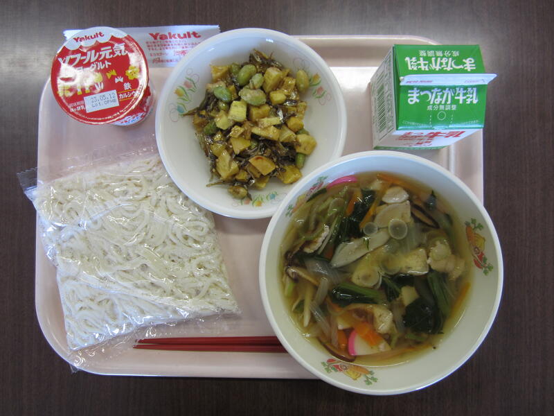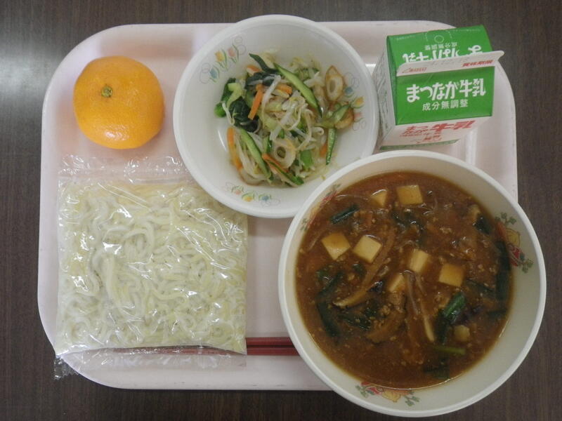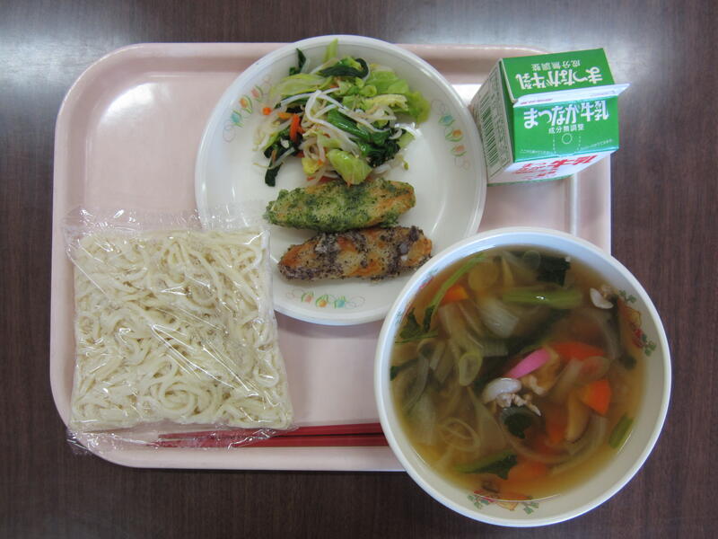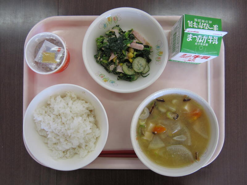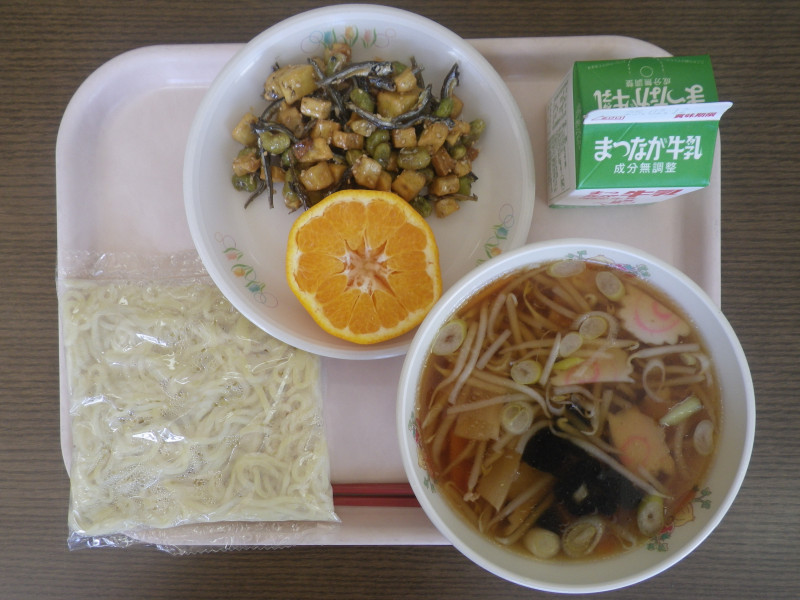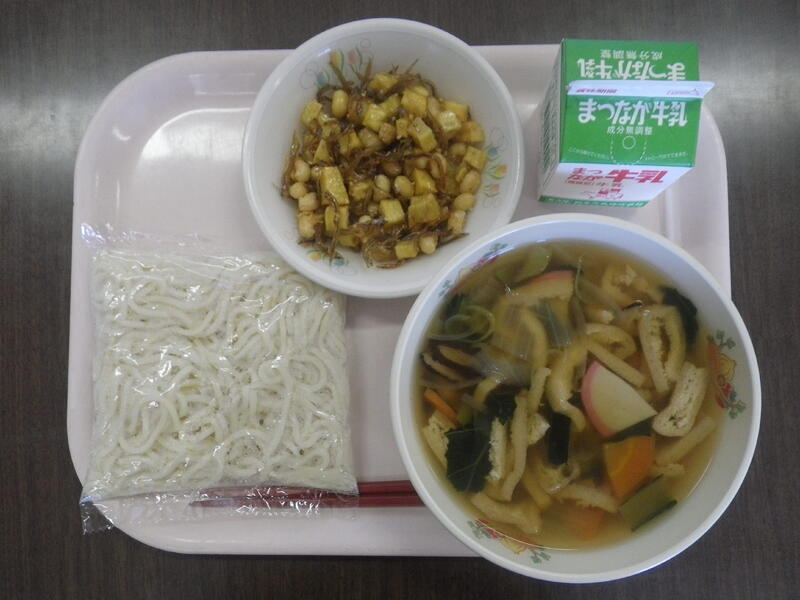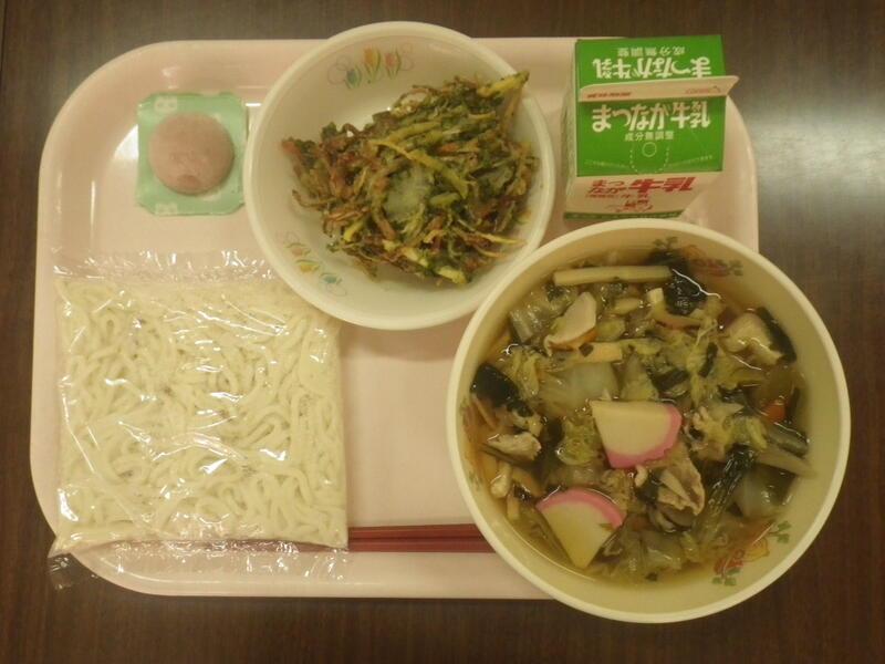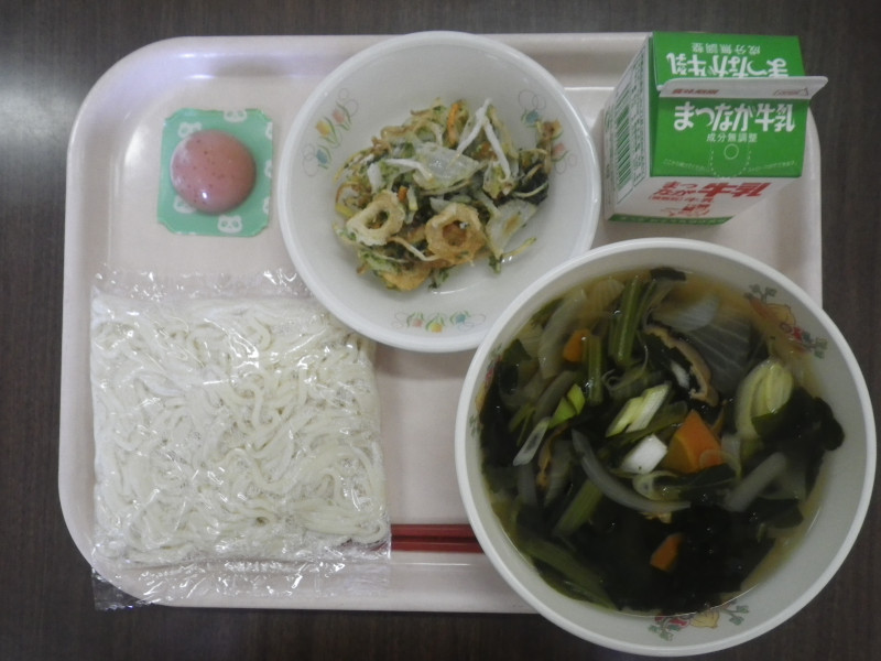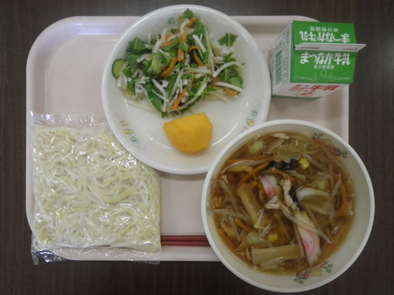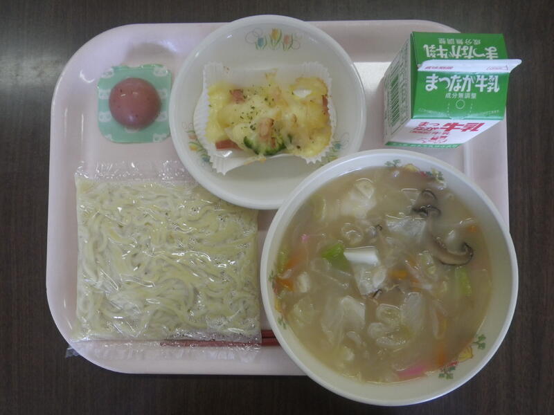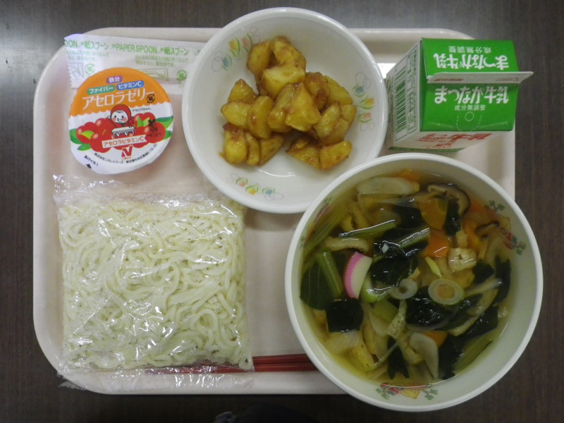 6/15 ちゃんぽんめん 牛乳 こまつなとひじきのナムル 県産一口りんごゼリー