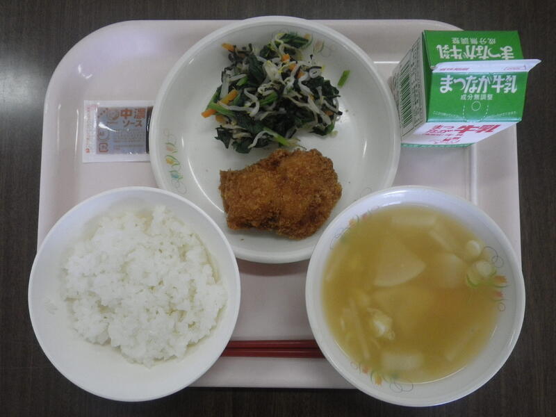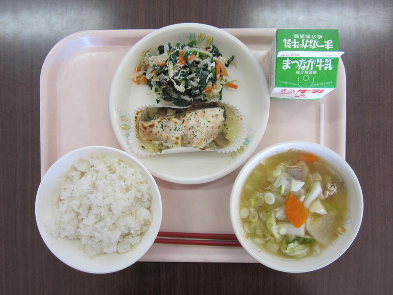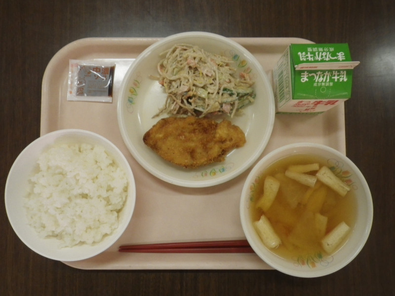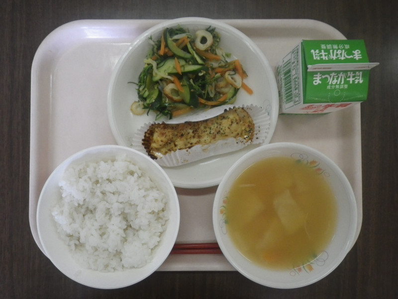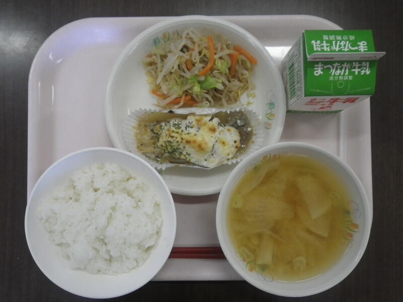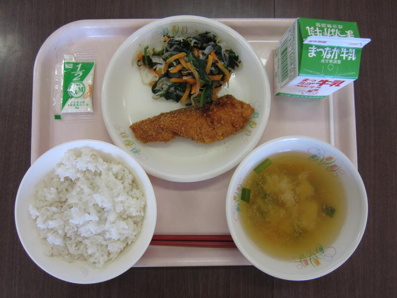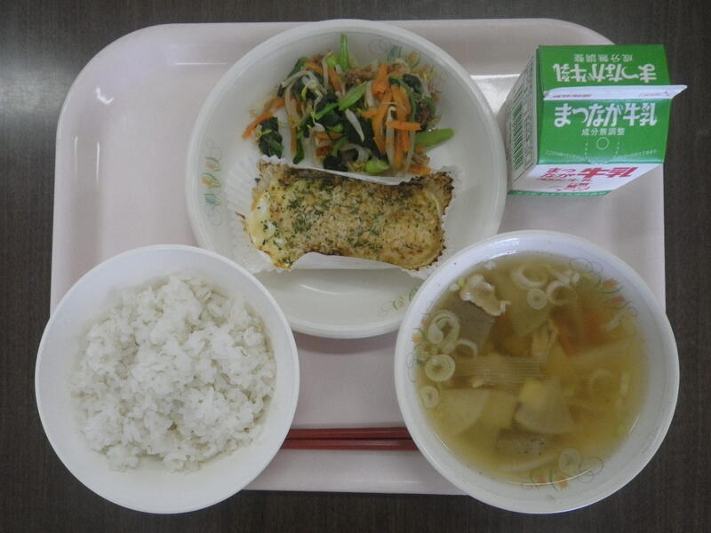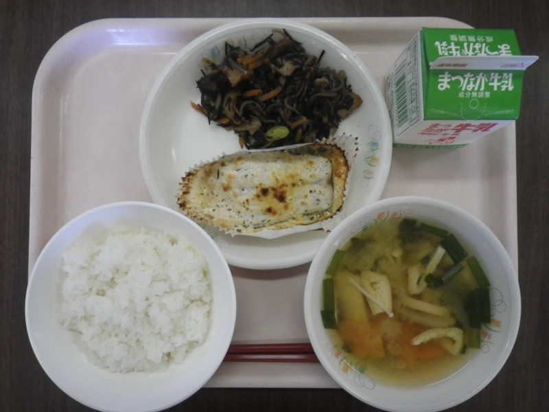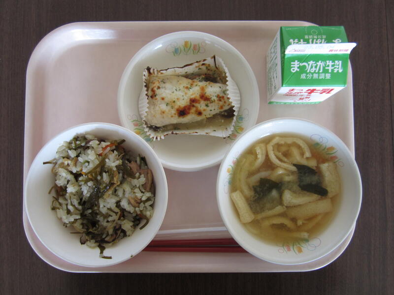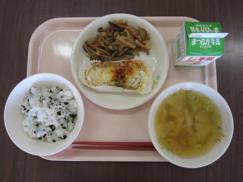 4/28 きりこんぶごはん 牛乳 白身魚のマヨネーズ焼き だいこんのみそ汁