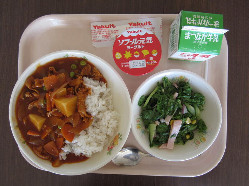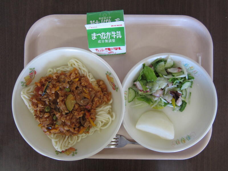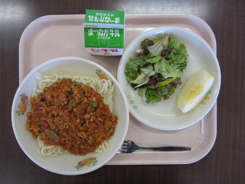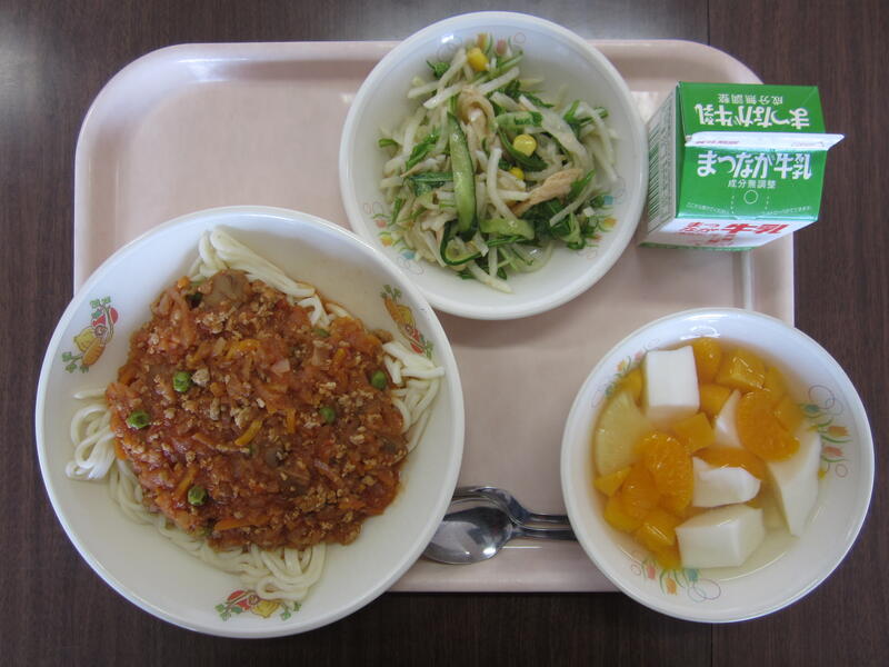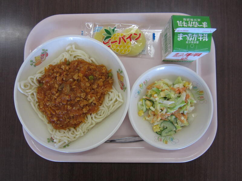 5/11 スパゲティミートソース 牛乳 コースローサラダ れいとうパイン