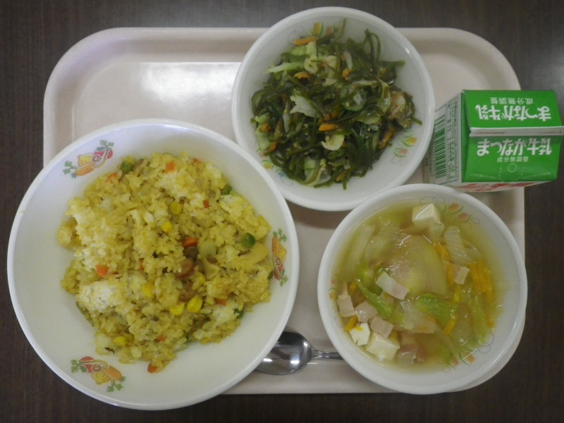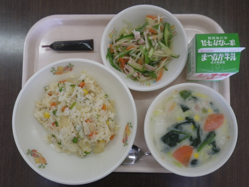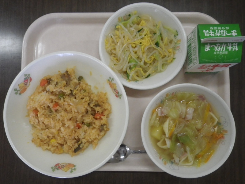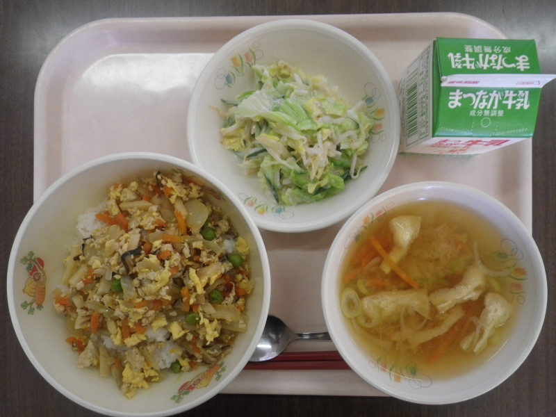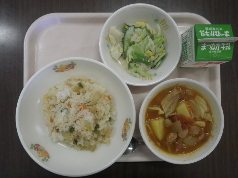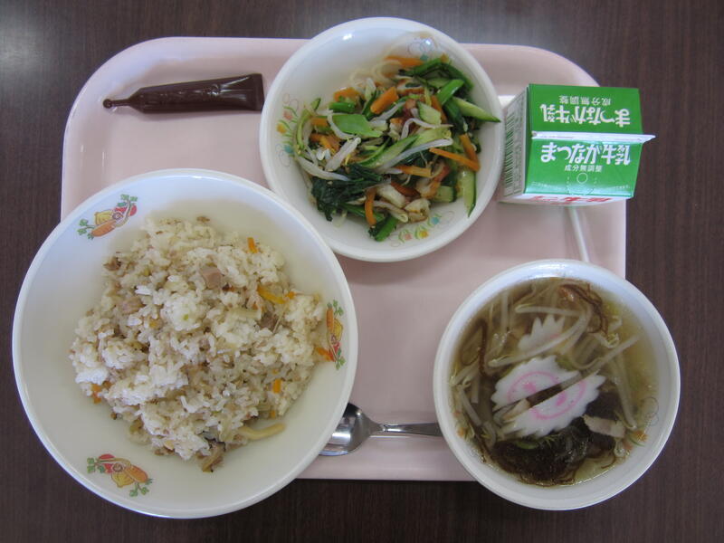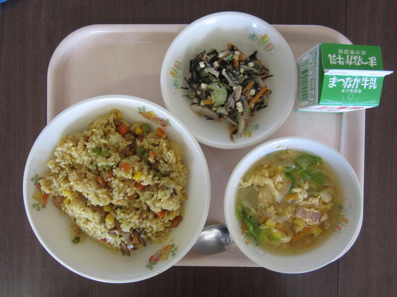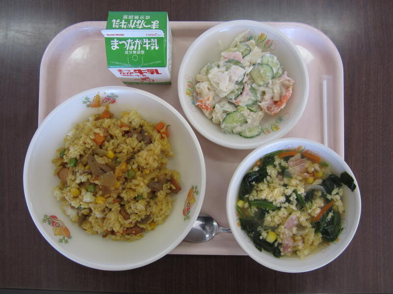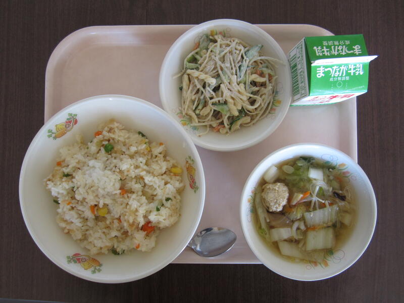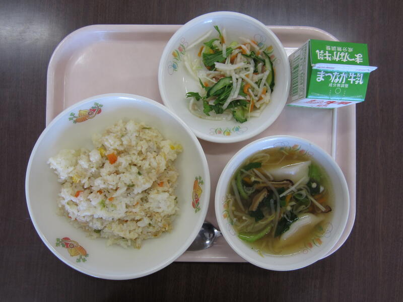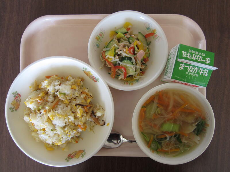 6/23 五目チャーハン 牛乳 シュウマイ チンゲン菜のスープ