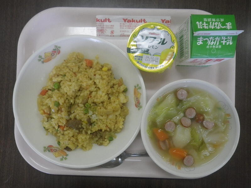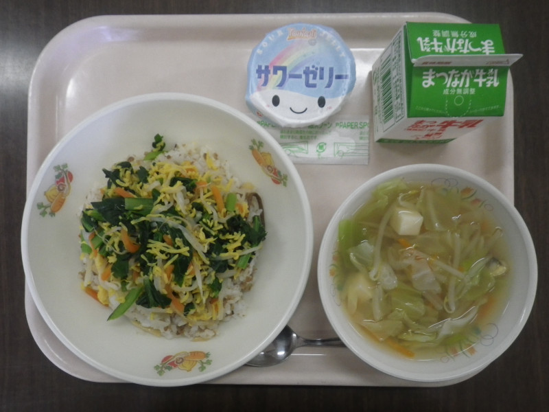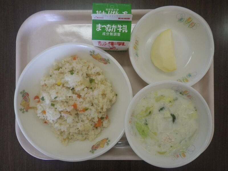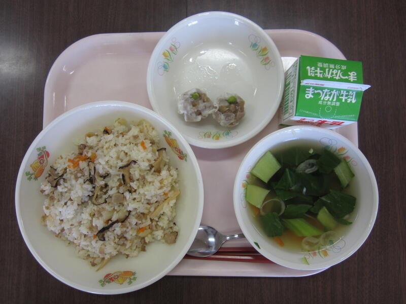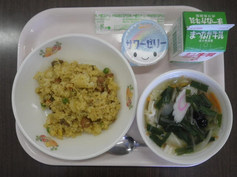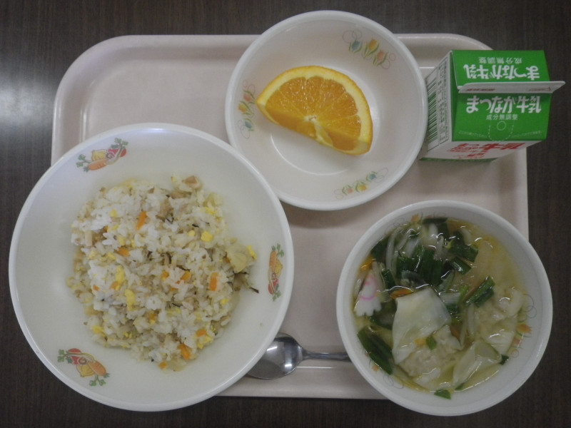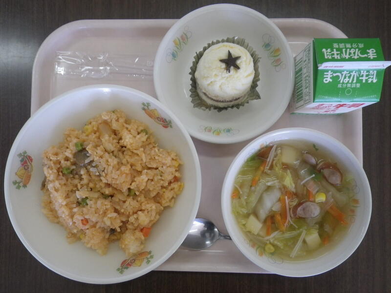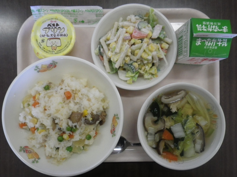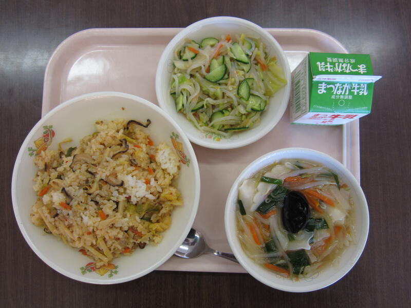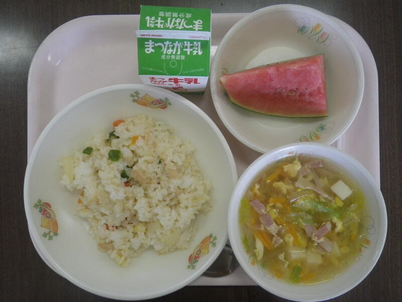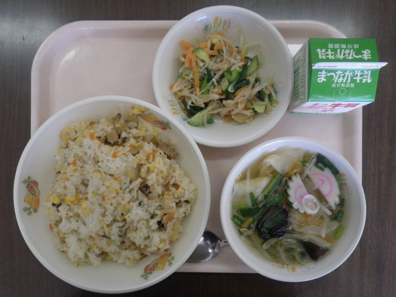 6/23 五目チャーハン 牛乳 シュウマイ チンゲン菜のスープ