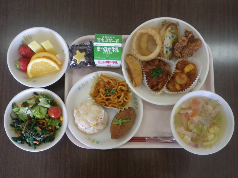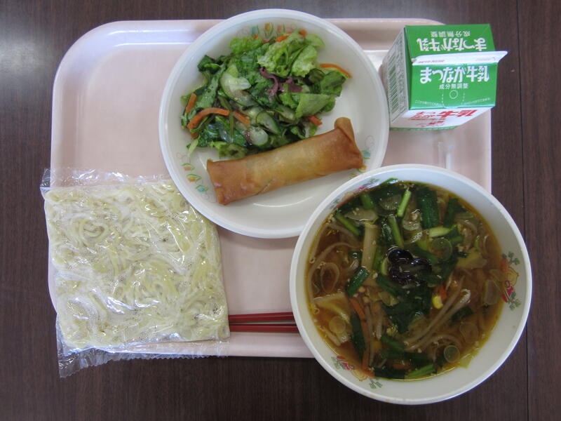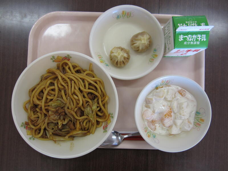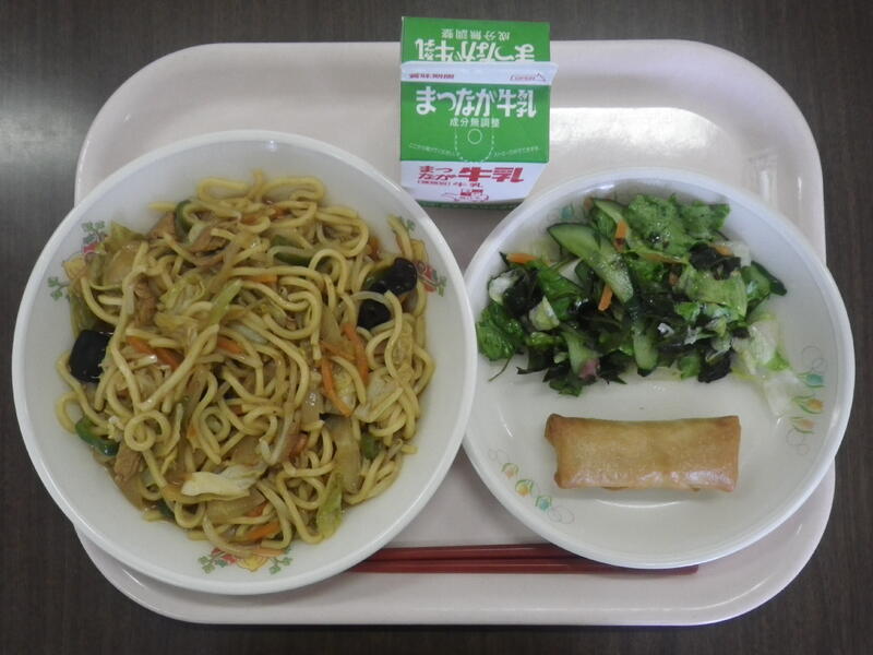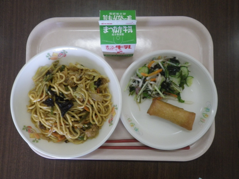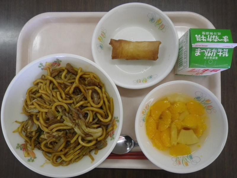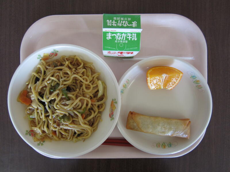 5/18 焼きそば 牛乳 春巻 オレンジ