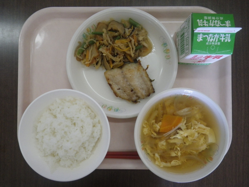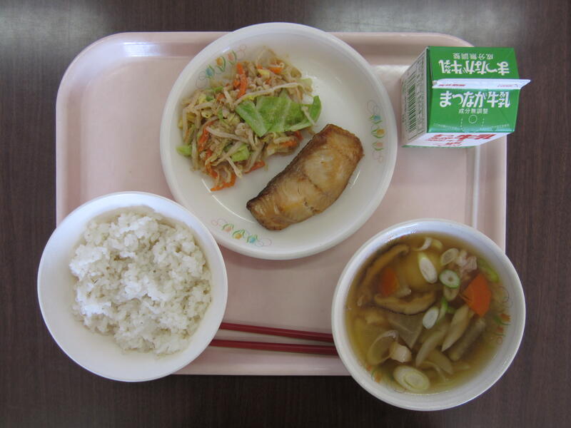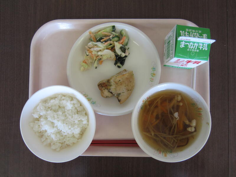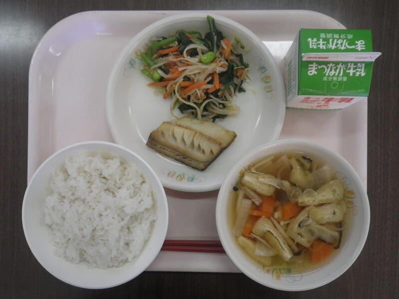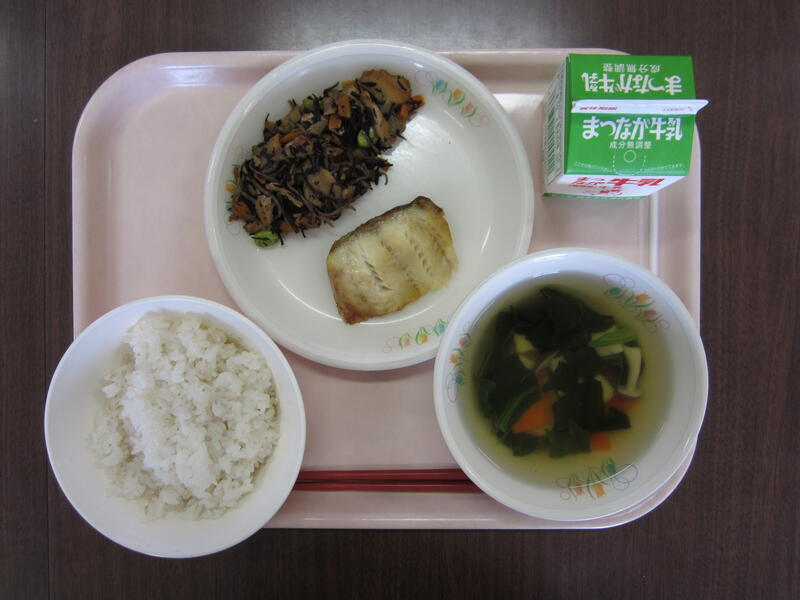 5/19 麦ごはん 牛乳 ほっけの塩焼き ひじきの煮物 すまし汁