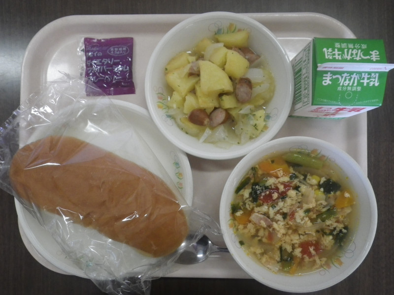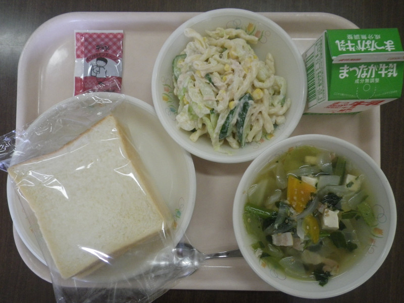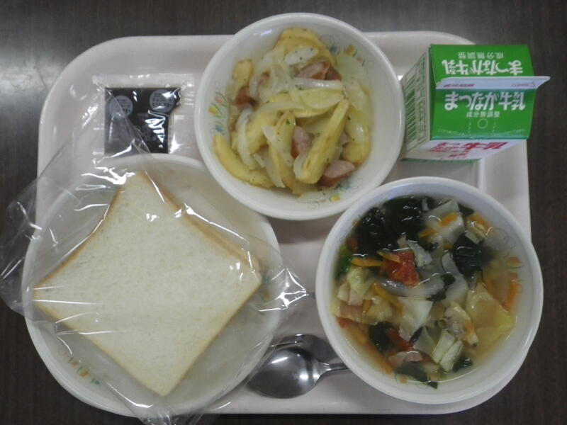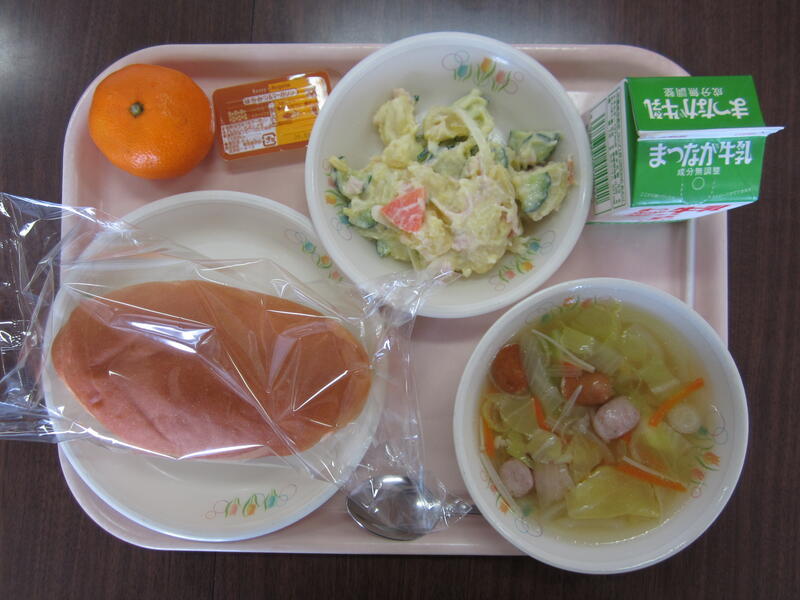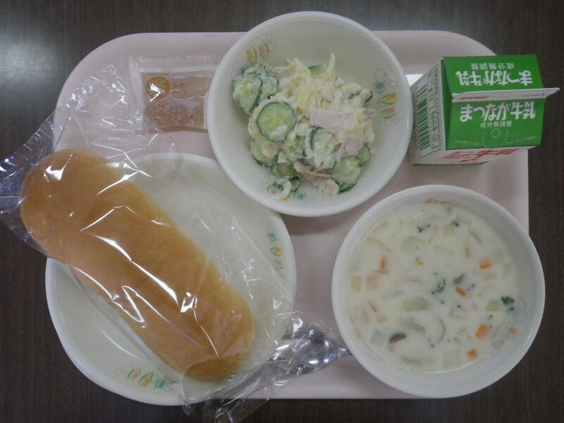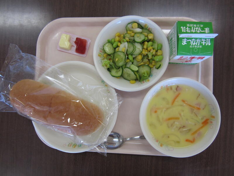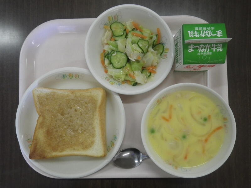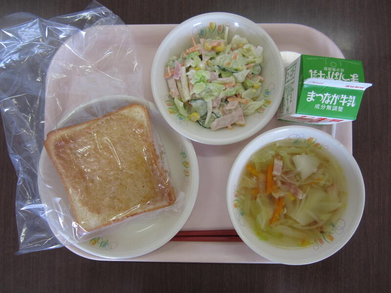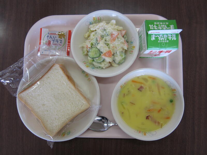5/30 食パン 牛乳 りんごジャム ポテトサラダ コーンクリームスープ