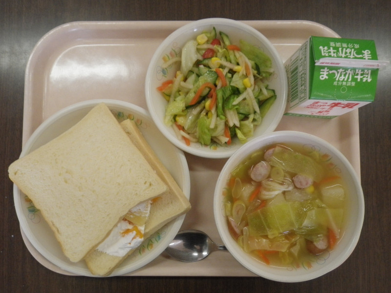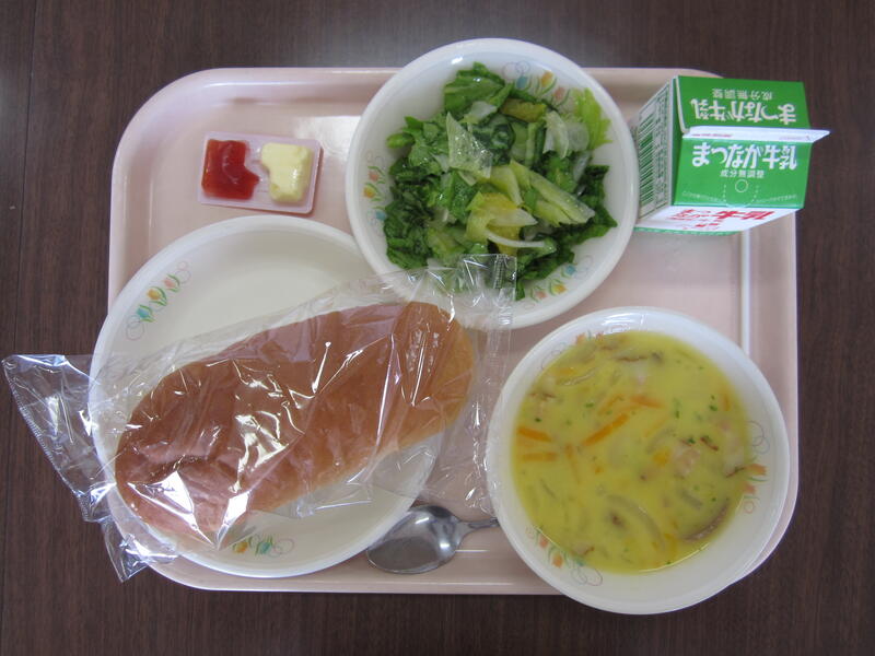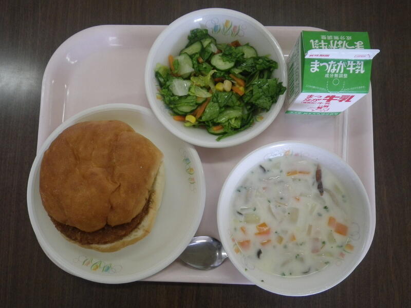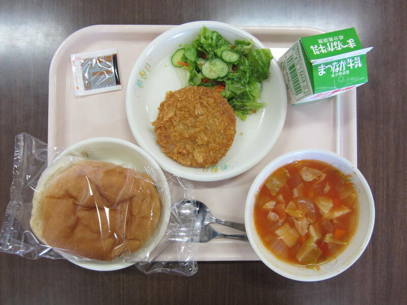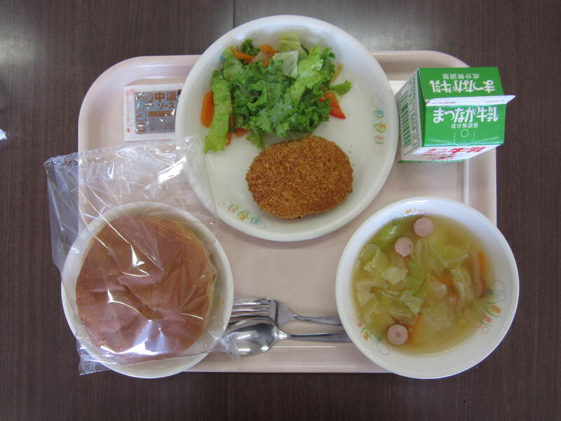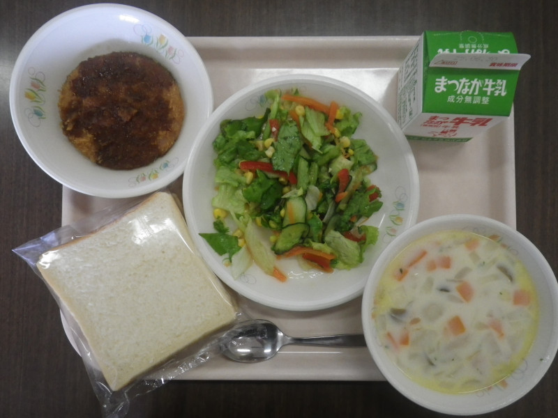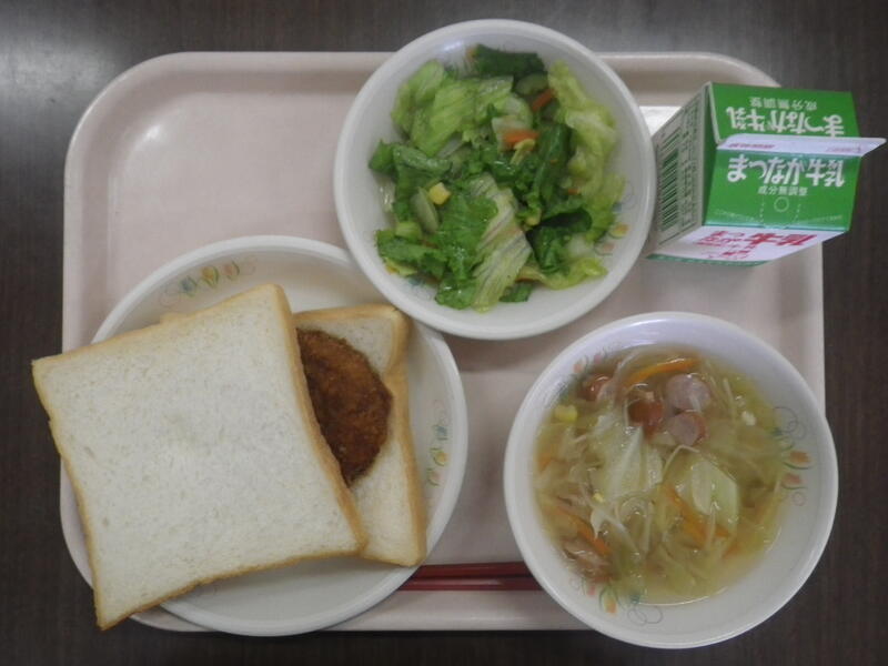 6/6 セルフコロッケサンド ソース 牛乳 グリーンサラダ アルファベットスープ
