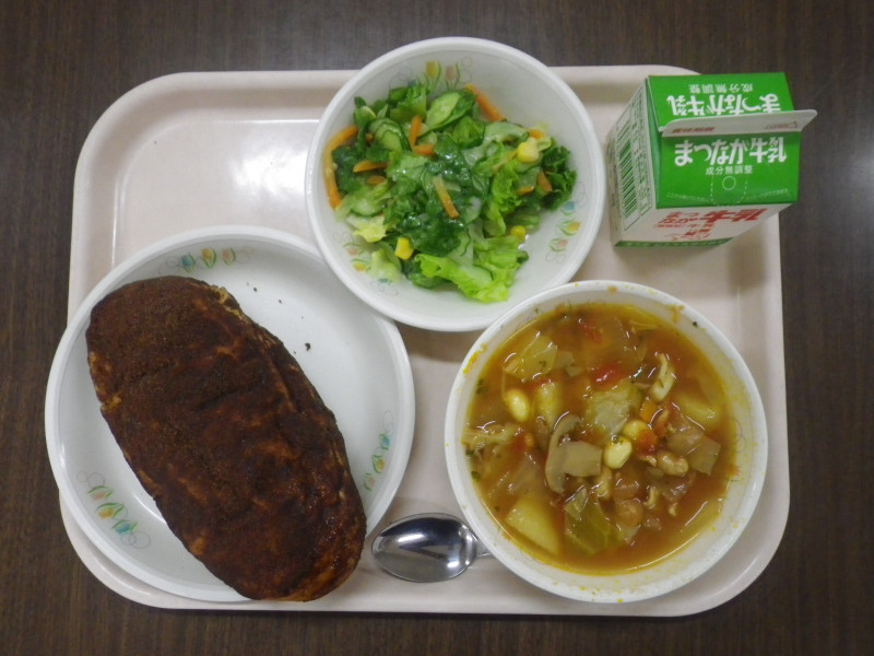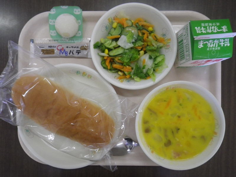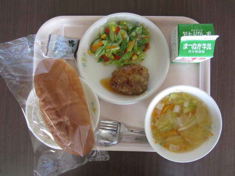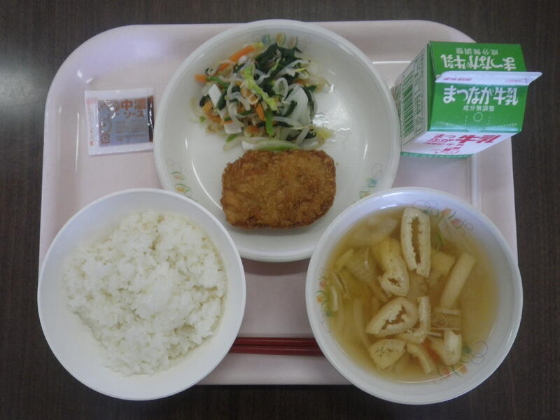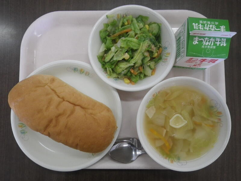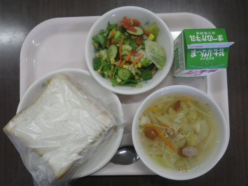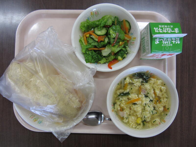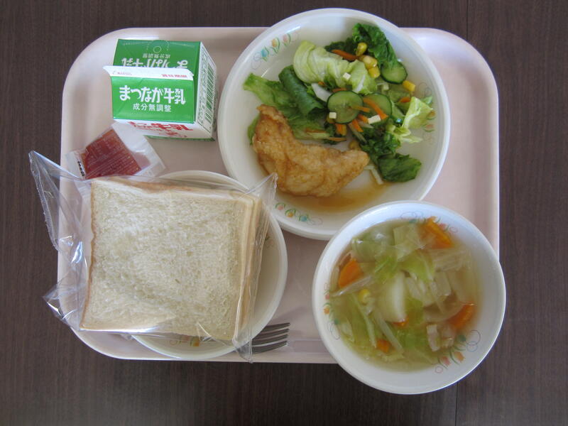6/6 セルフコロッケサンド ソース 牛乳 グリーンサラダ アルファベットスープ
