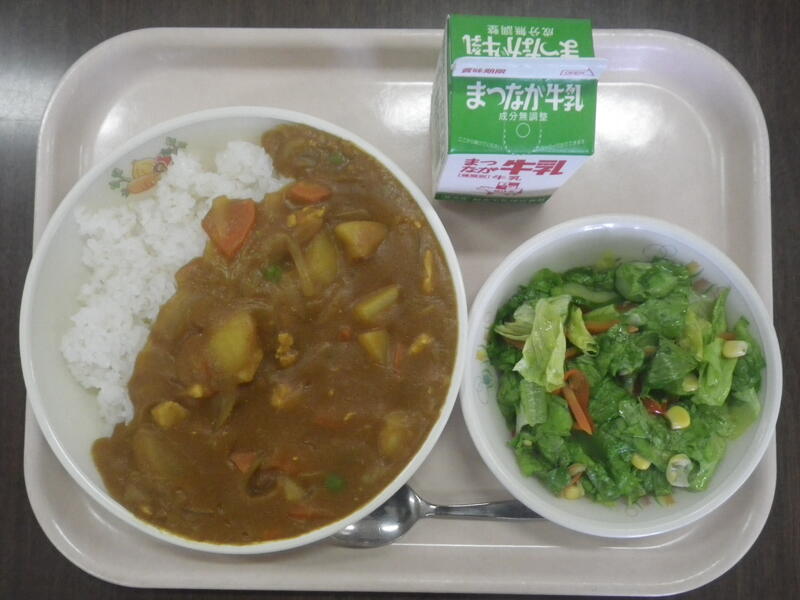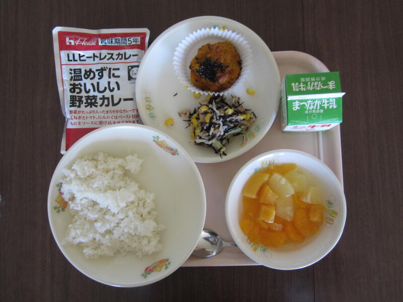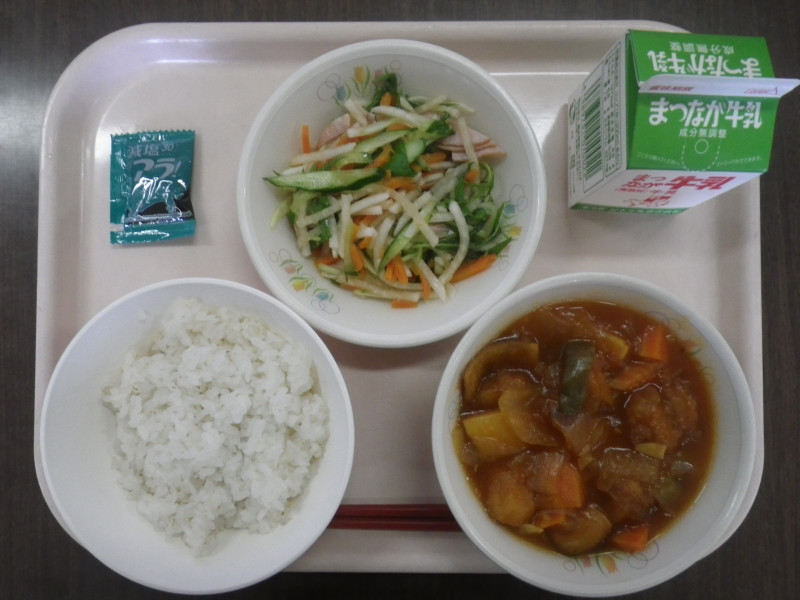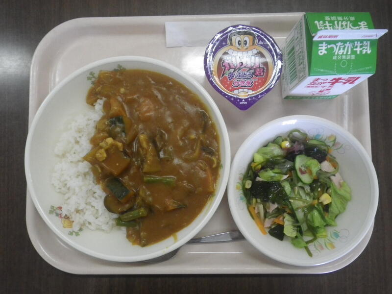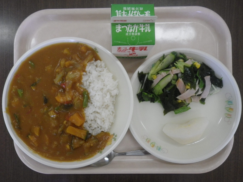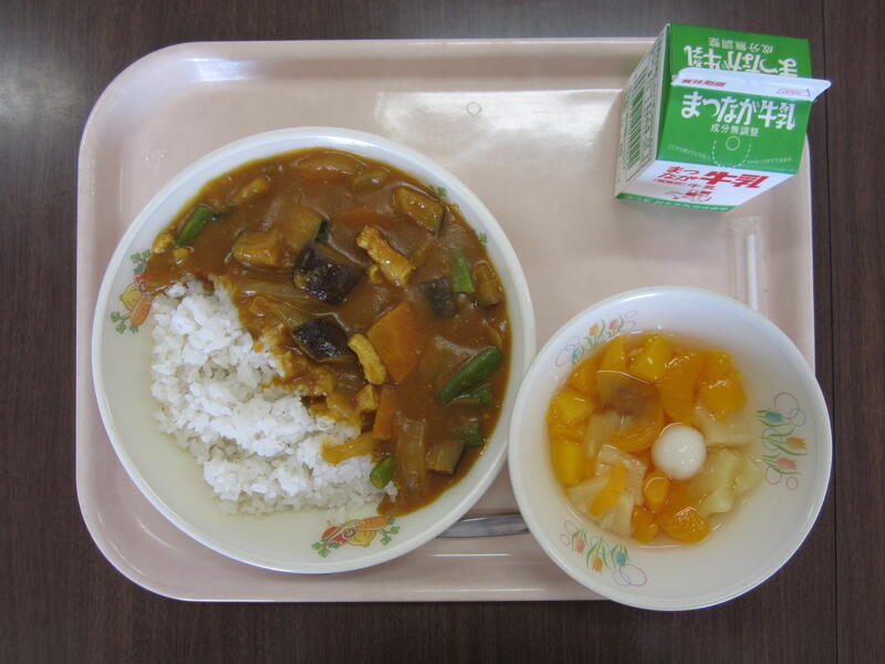 7/3 夏野菜カレー 牛乳 フルーツポンチ