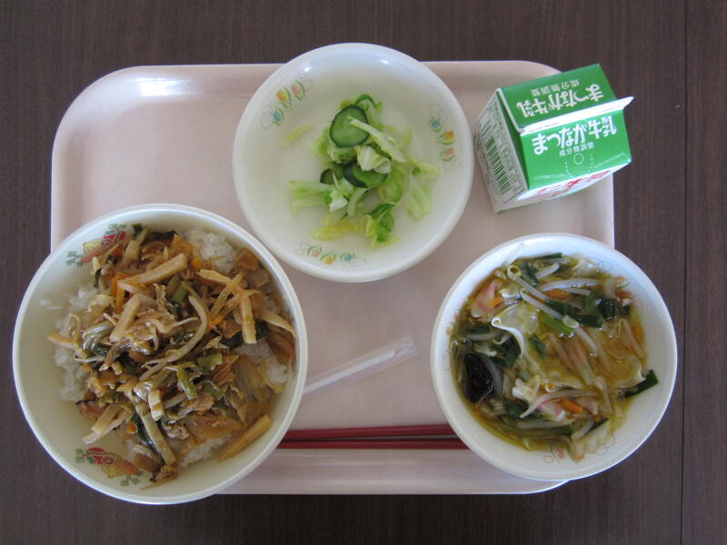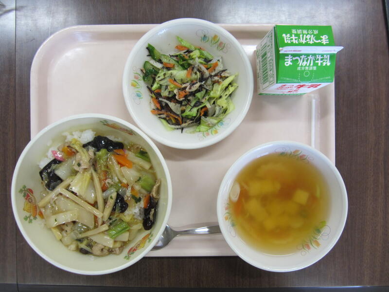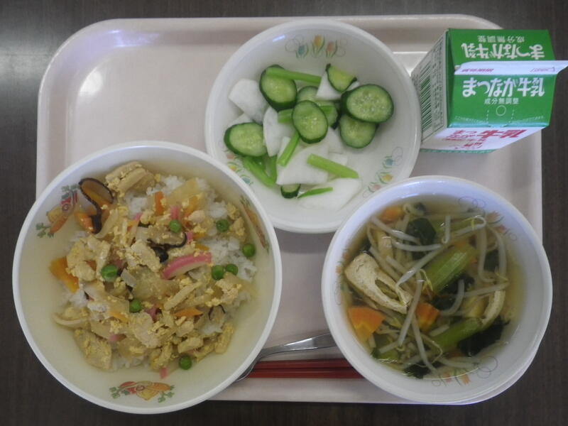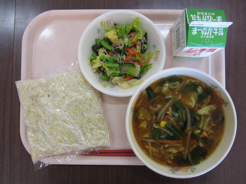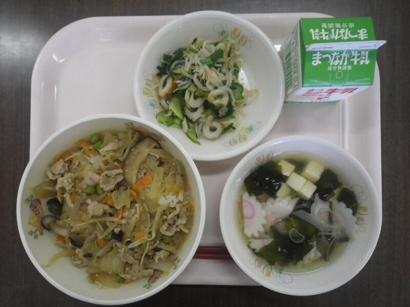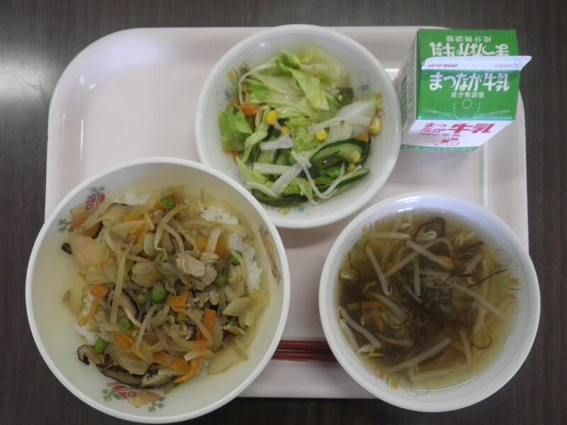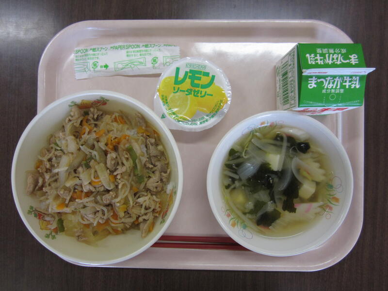 中華丼 牛乳 春雨スープ モーモーゼリー
