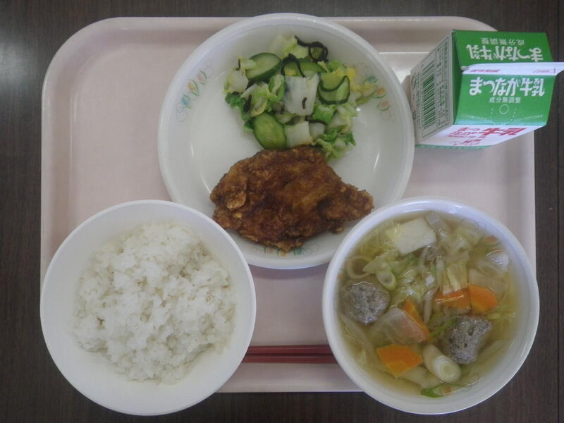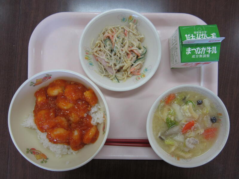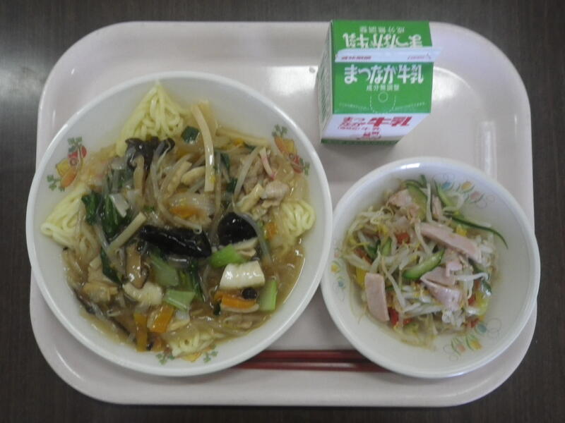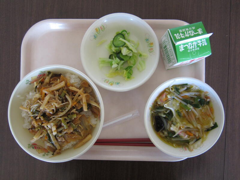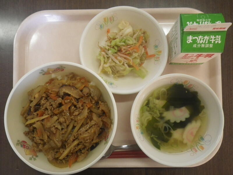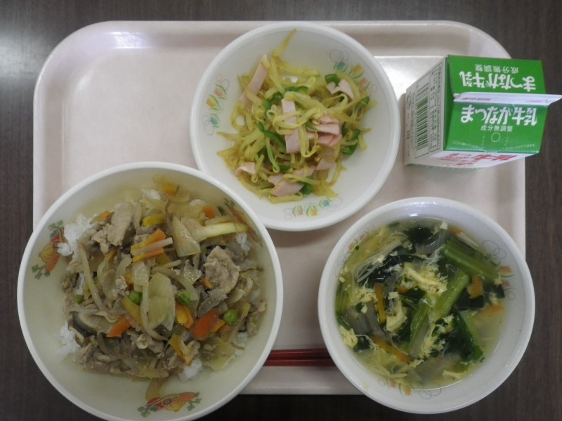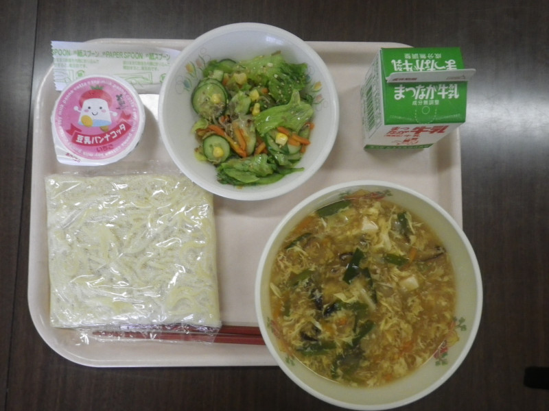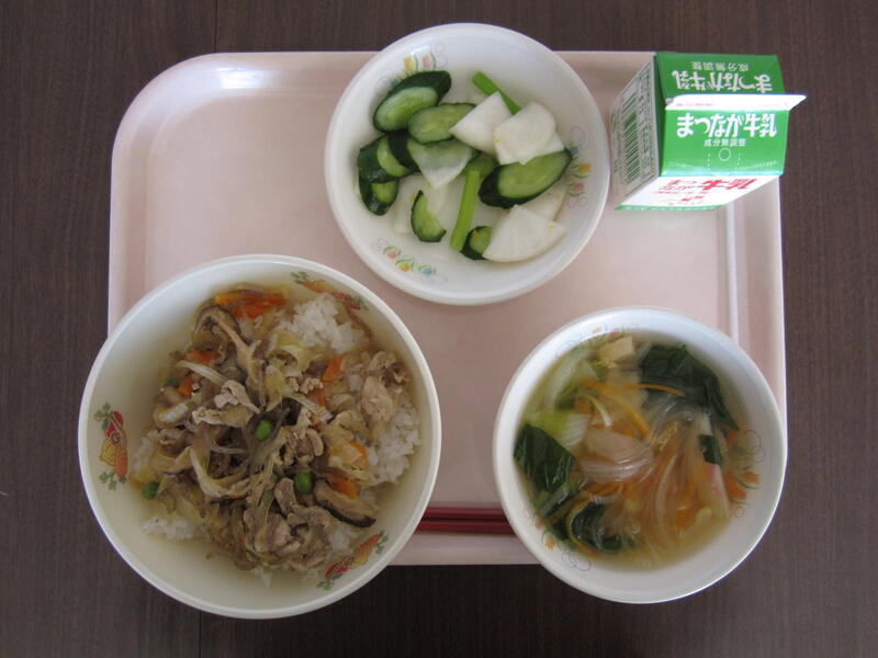 中華丼 牛乳 春雨スープ モーモーゼリー