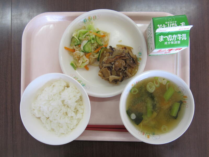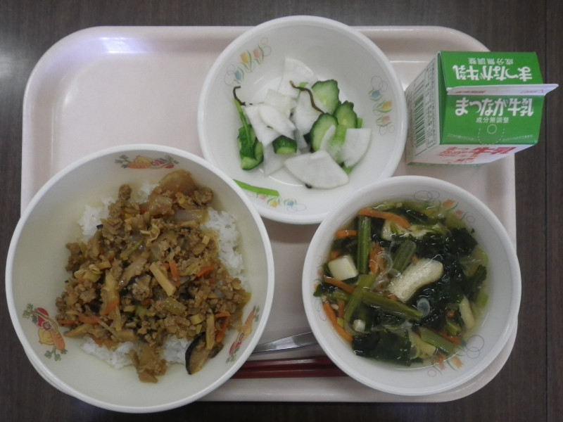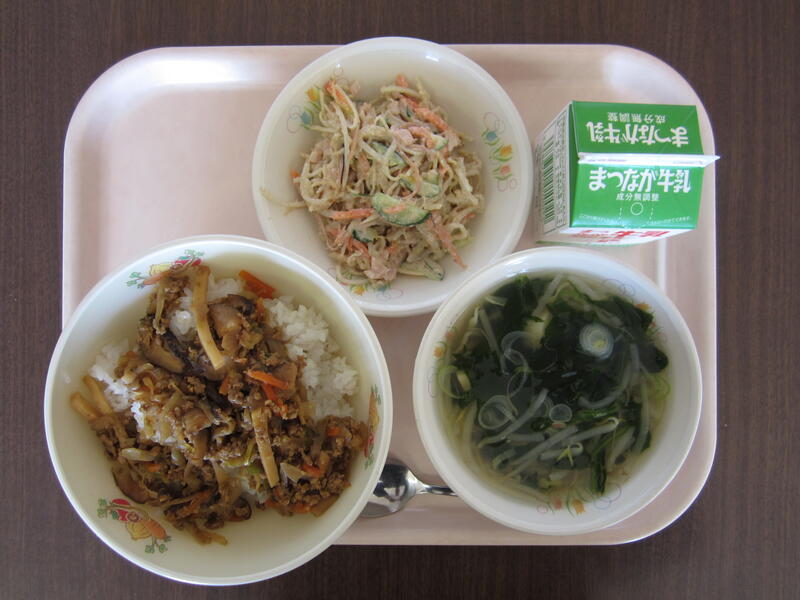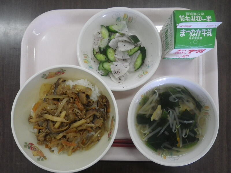 10/20 豚きのこ丼 牛乳 たくあん和え ごぼうの味噌汁