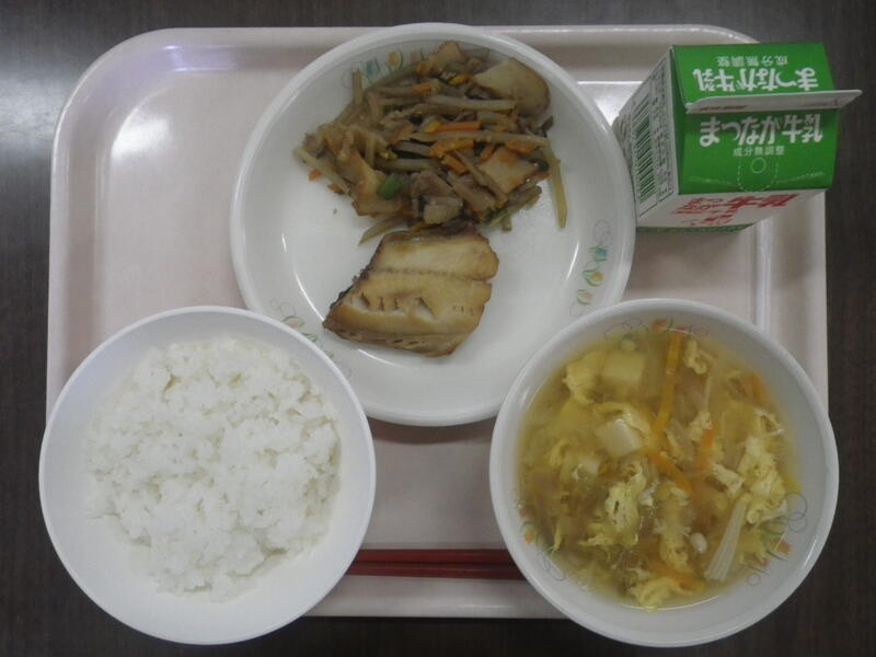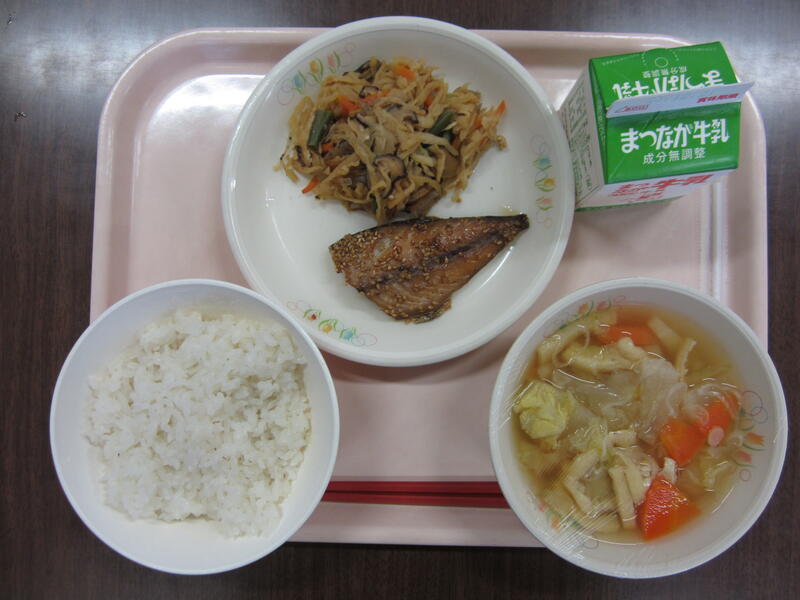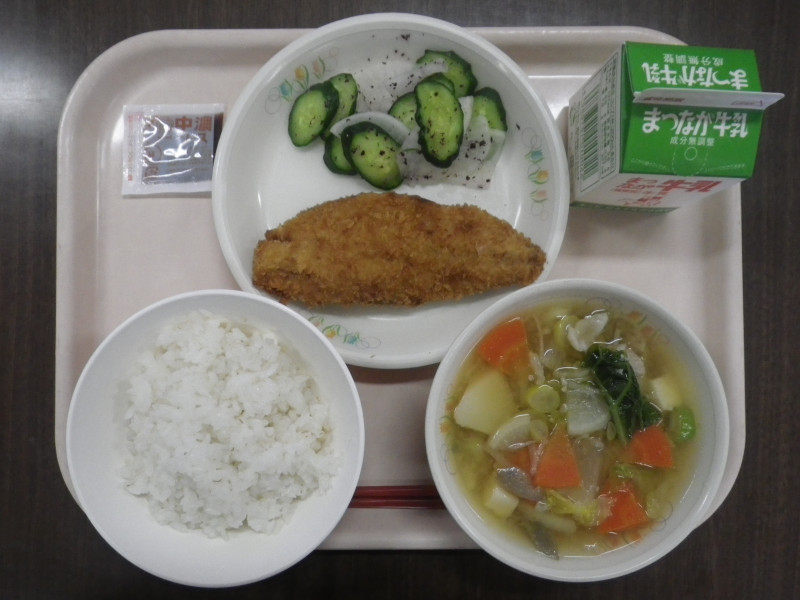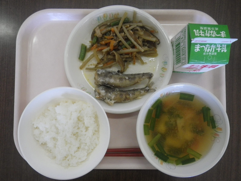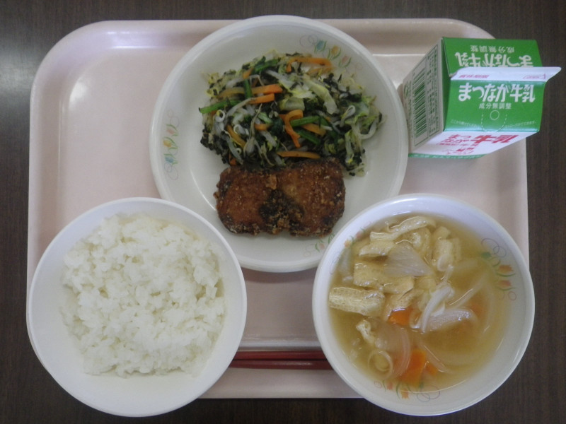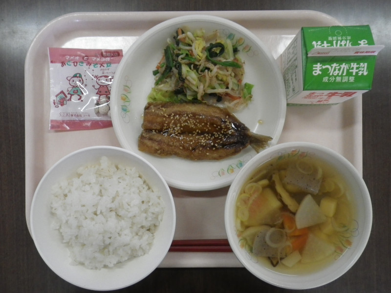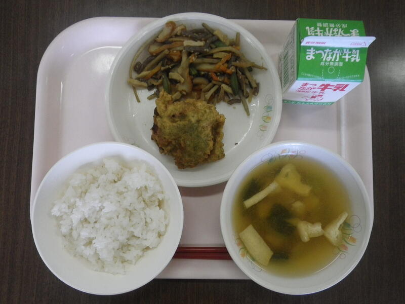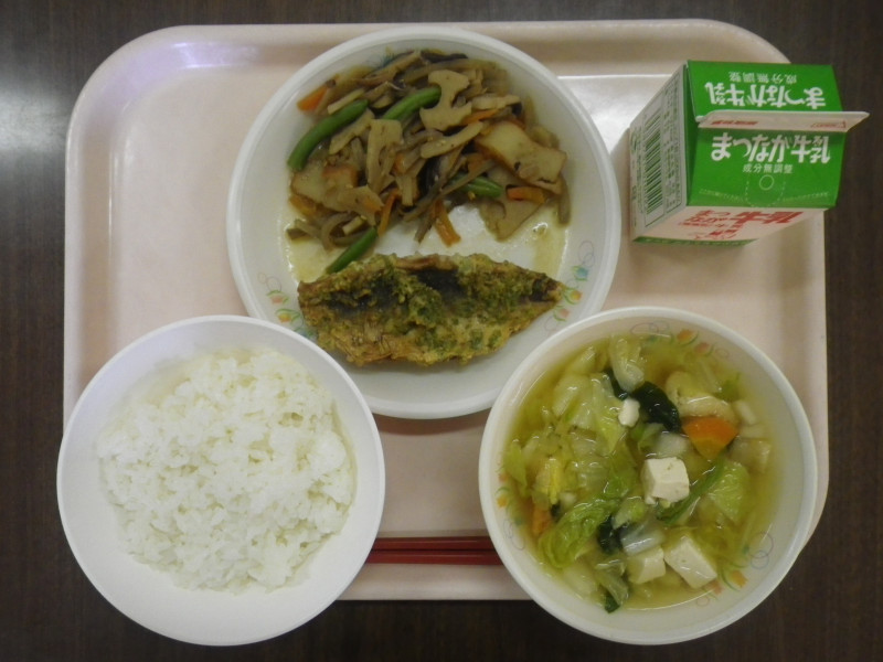 11/12 ごはん 牛乳 あじの磯辺揚げ れんこんのきんぴら 白菜の味噌汁