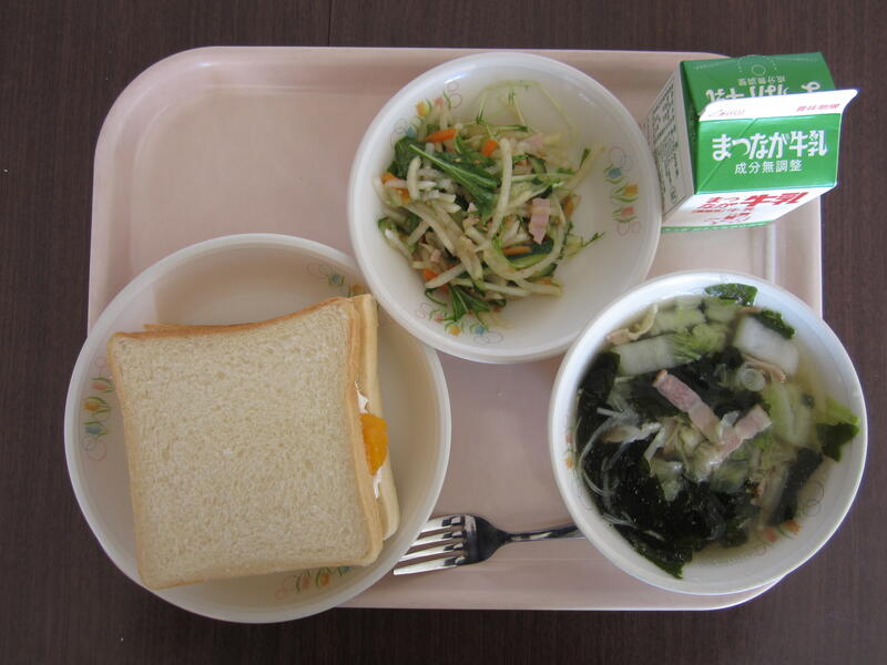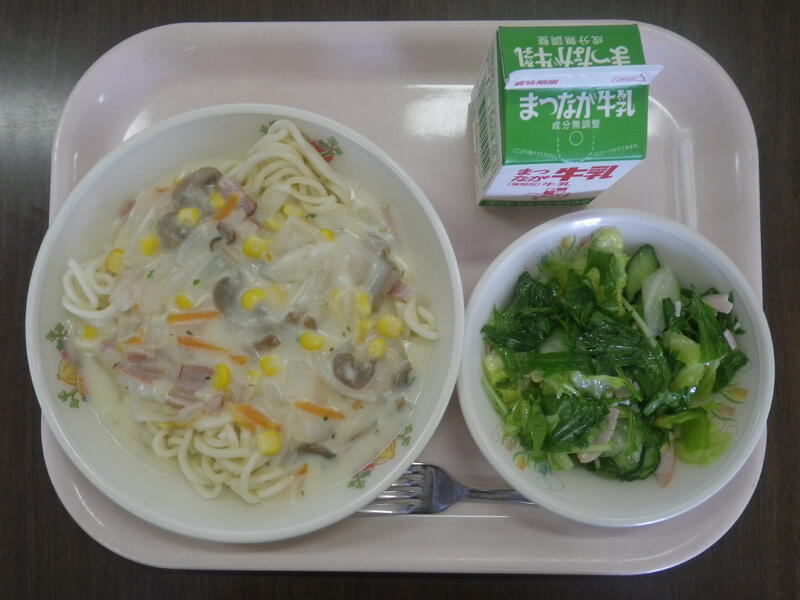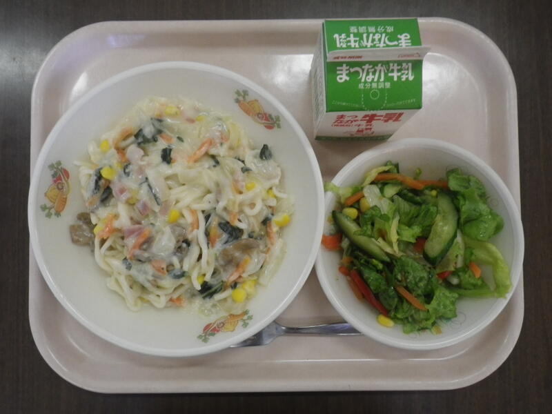 6/8 クリームスパゲティ 牛乳 海藻サラダ