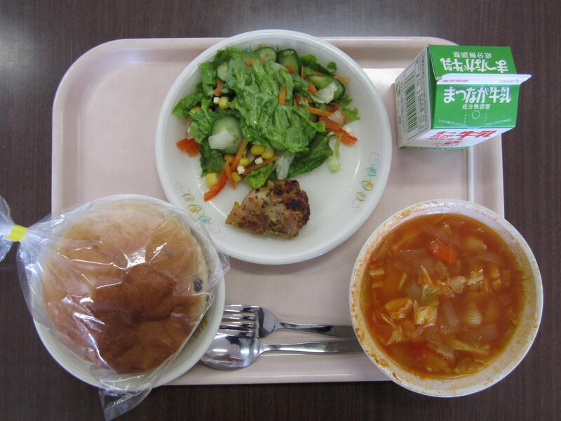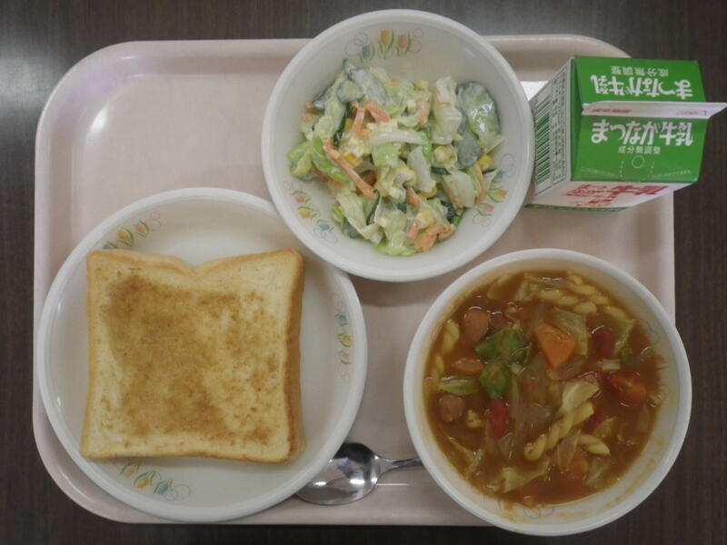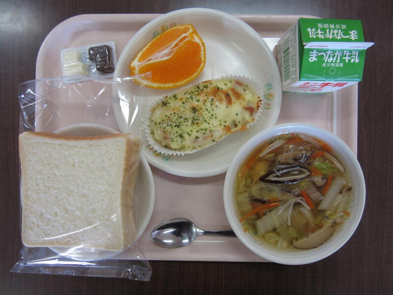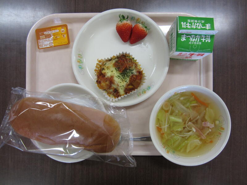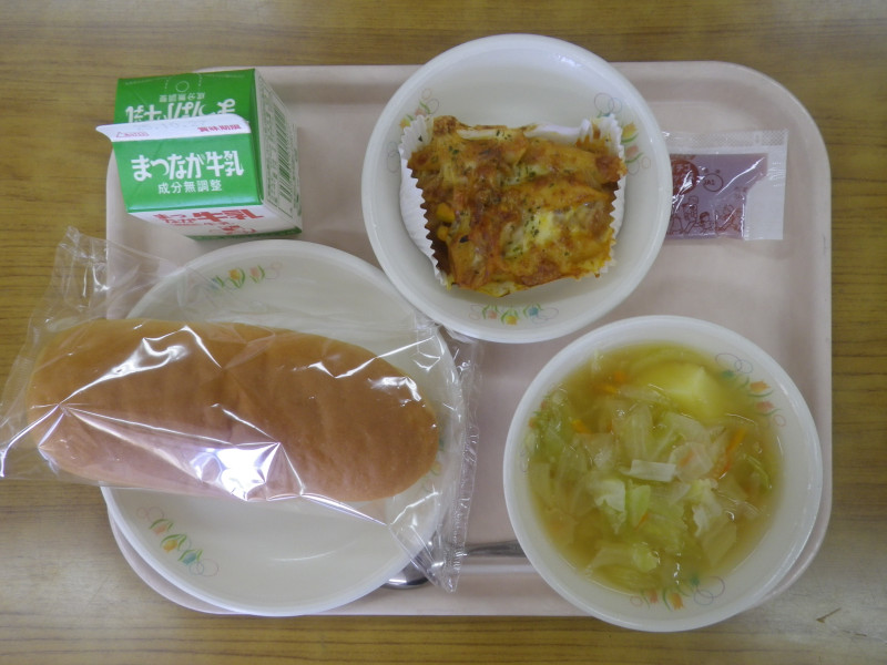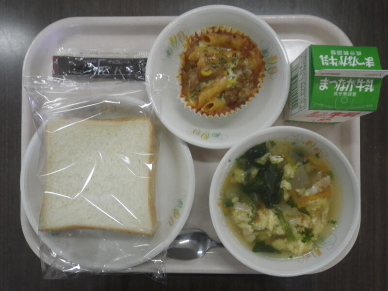 10/21 コッペパン いちごジャム 牛乳 ペンネのミートグラタン 野菜スープ