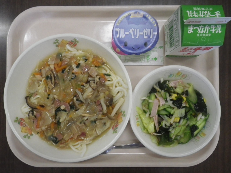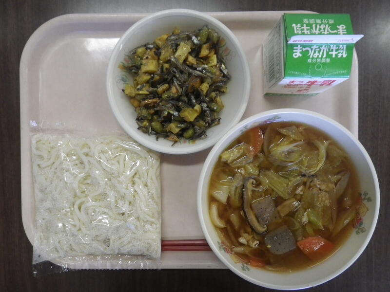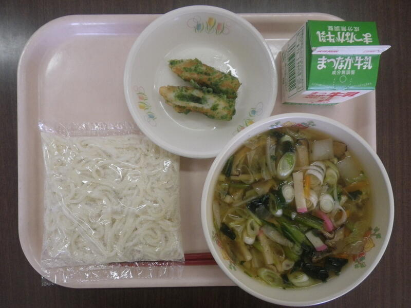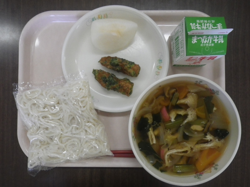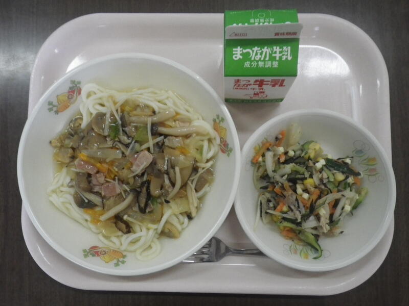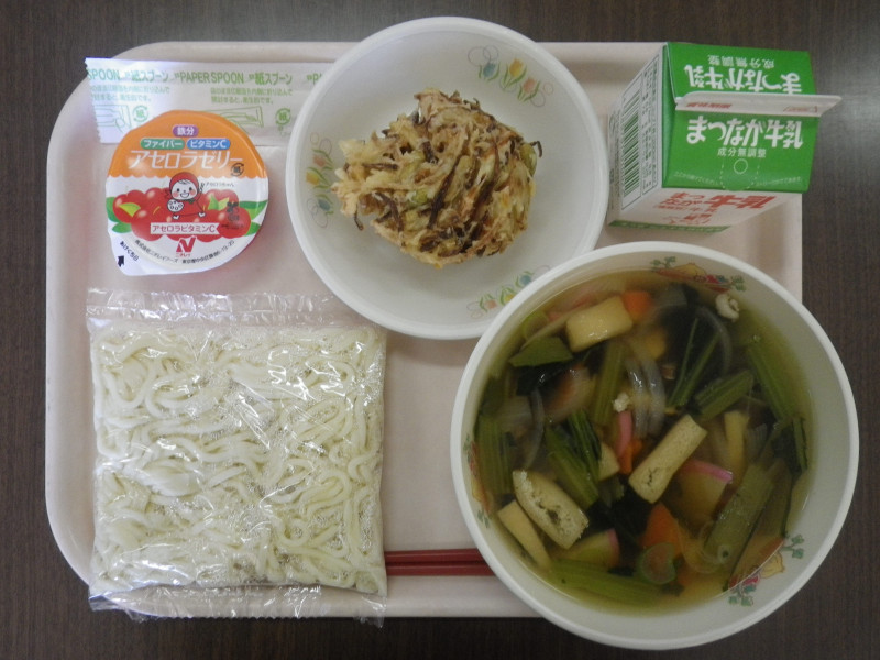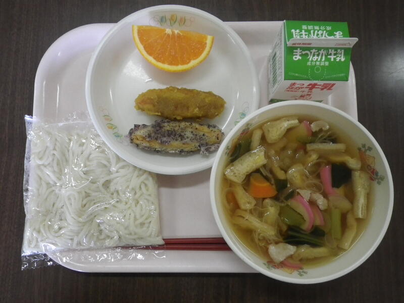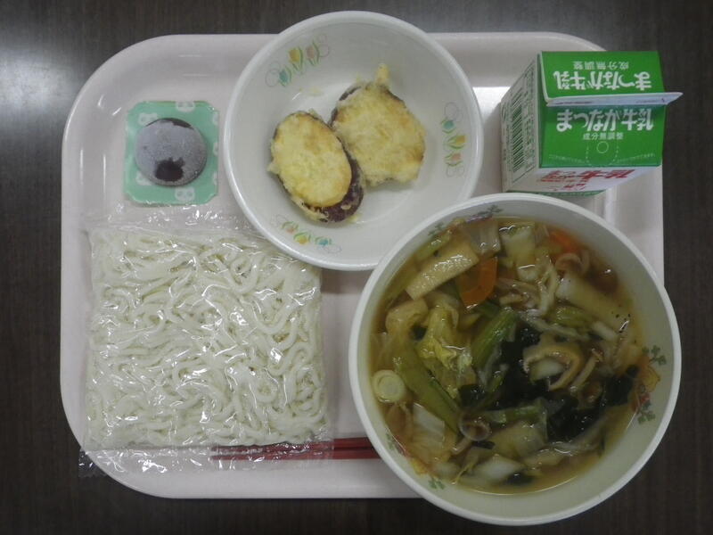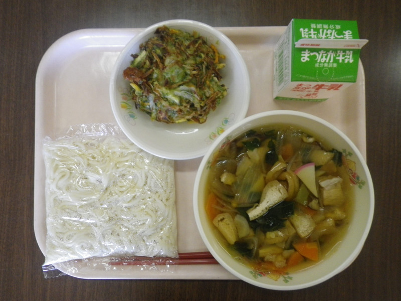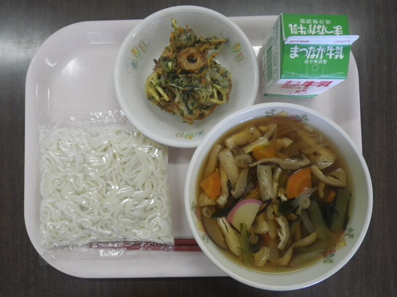 11/20 五目うどん 牛乳 相馬のかき揚げ