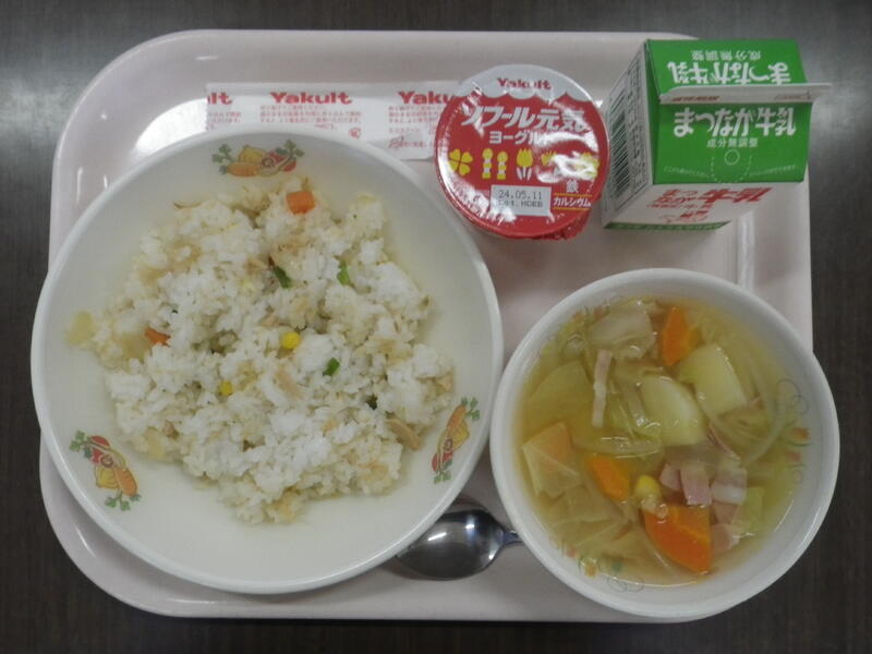 5/12 ツナピラフ 牛乳 大根サラダ 水ぎょうざスープ