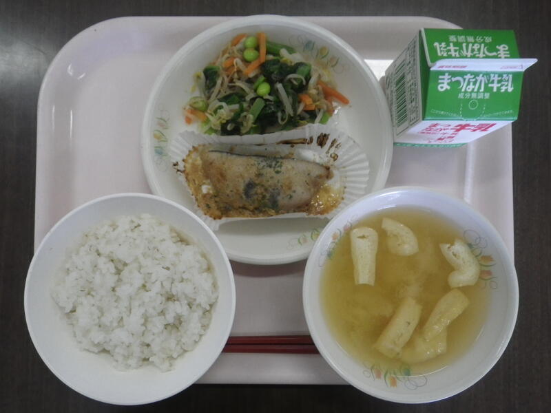 6/12 ごはん 牛乳 白身魚のマヨネーズ焼き いんげんのごまあえ あおさのりのみそ汁