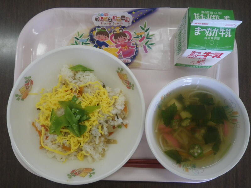 7/5 五目ちらし寿司 牛乳 七夕汁 七夕クレープ