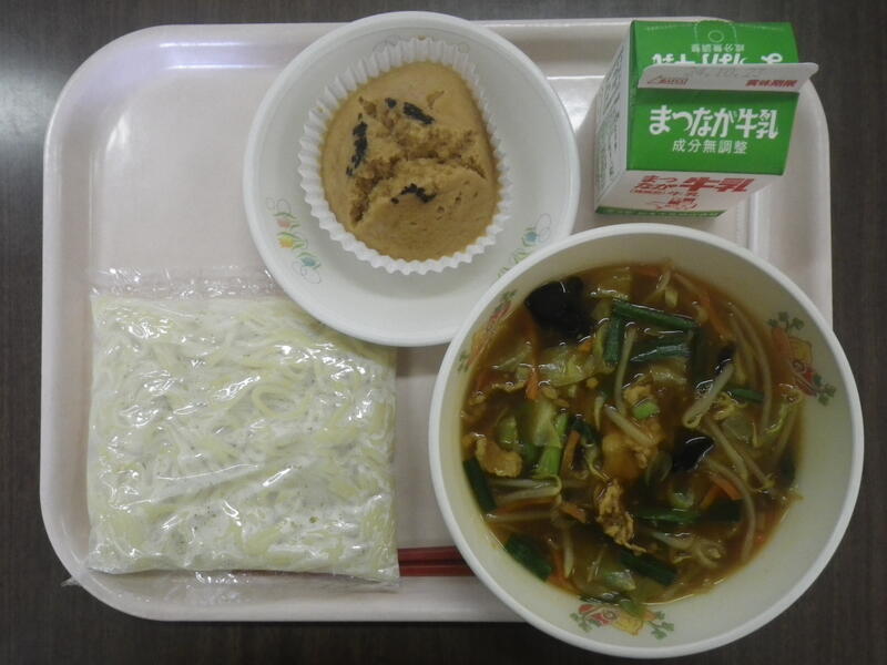 11/27 味噌ラーメン 牛乳 もやしのナムル