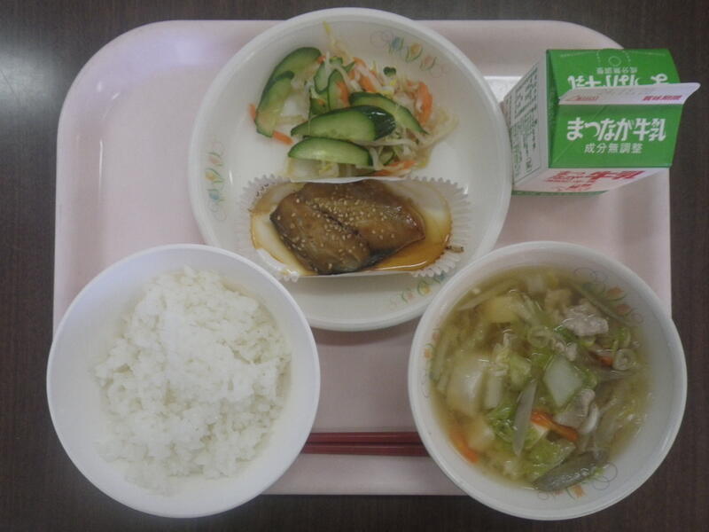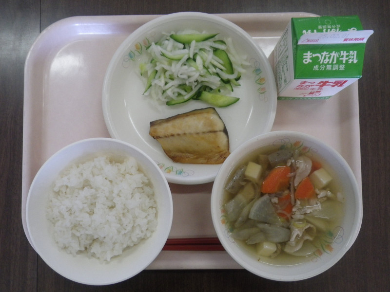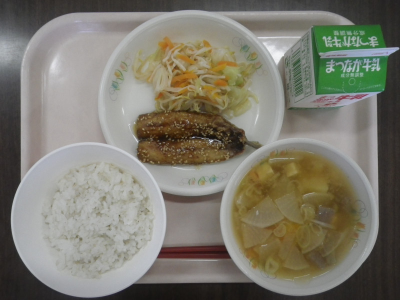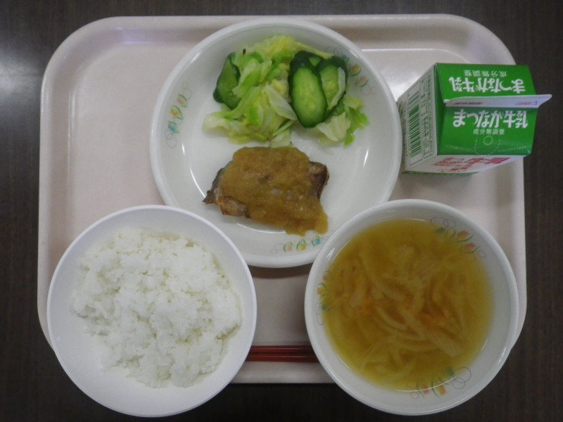 10/22 ごはん 牛乳 焼さばのおろしがけ キャベツの塩昆布和え 里芋の味噌汁