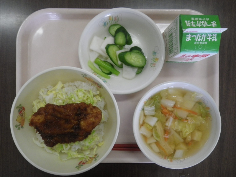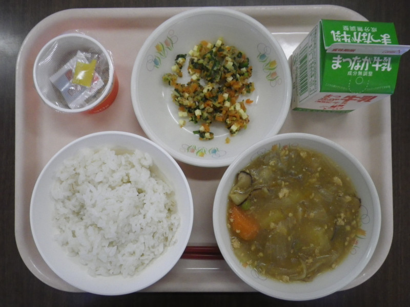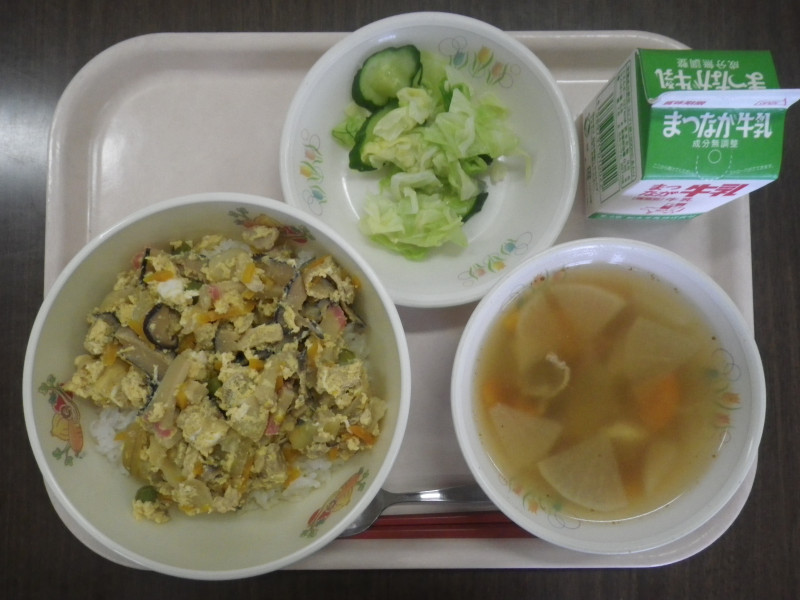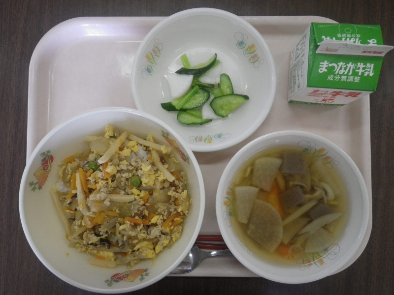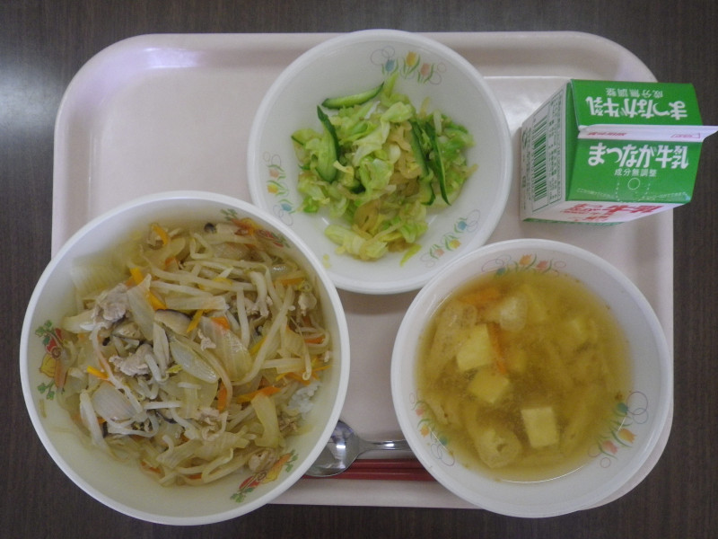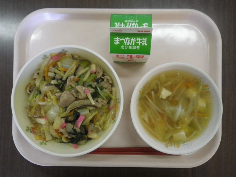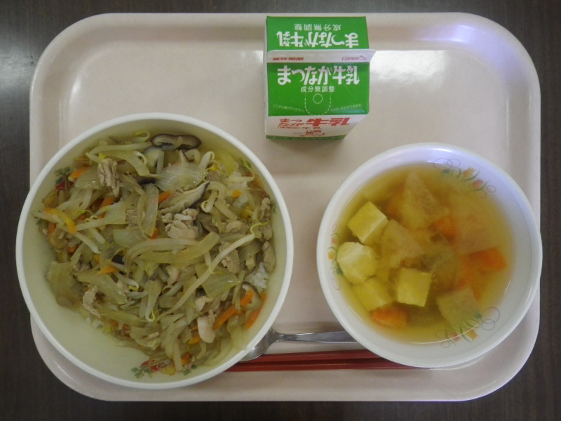 11/14 中華丼 牛乳 豆腐とあさりのスープ