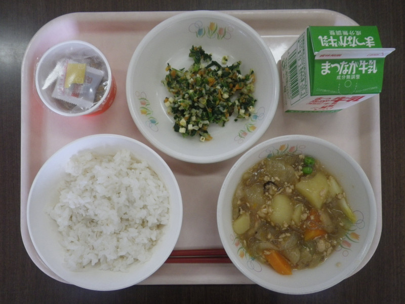 4/26 ごはん のりふりかけ 牛乳 かみかみあえ じゃがいものうま煮