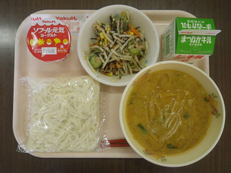 10/23 豆乳坦々うどん 牛乳 ひじきのサラダ ヨーグルト