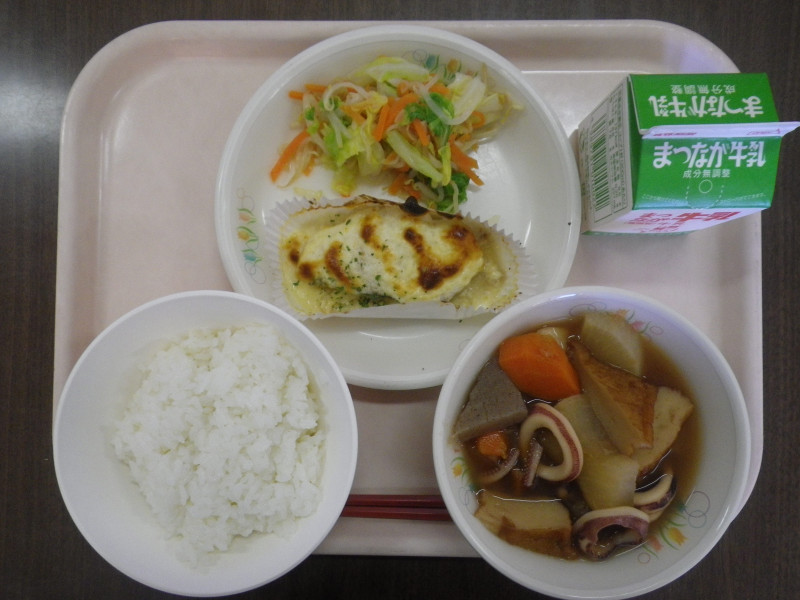 11/17 ごはん 牛乳 白身魚のマヨネーズ焼き ごま酢和え いかと大根の煮物