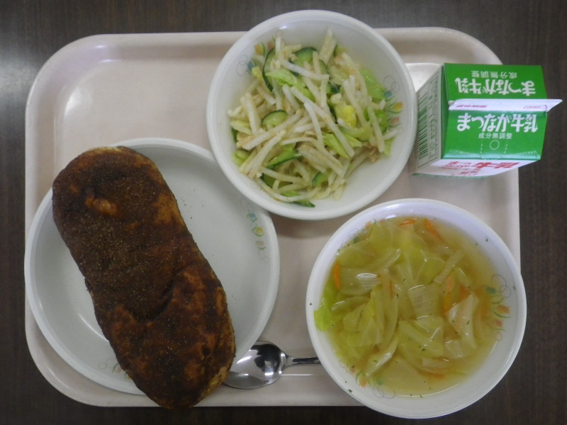 12/2 ココア揚げパン 牛乳 大根とツナのサラダ オニオンスープ