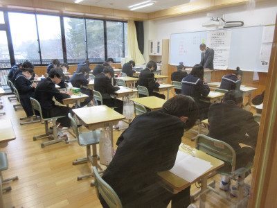 本日、相馬消防署員の方々を講師にお招きして、救急救命講座を2年生で実施しました。いざという時に、人の命を救うために、覚えておきたい知識、技能であります。心配蘇生法やAEDの使い方など、教えていただきました。2年生は、真剣な表情で説明を聞き、一つ一つの動作を確認しながら取り組んでいました。