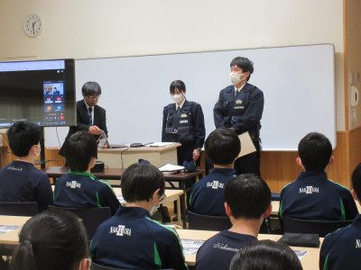 勉強+αで、探究学習やボランティア、部活動などを通して、自分の生き方を考え、将来に向かって努力するのが高校での学びであることを教わりました。本校出身の3人の先輩は、それぞれ来春の進路が決定しており、目標をもったきっかけや、どんなことを努力してきたかなど、具体的なお話を聞かせていただきました。子どもたちは、真剣な表情で話を聞いており、今後の自分たちの進路選択に向けて貴重な学びとなりました。