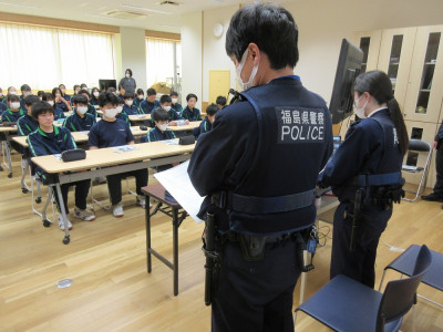 福島県警察本部 浜通り少年サポートセンター相双相談室の主任少年警察補導員の今野様を講師としてお招きして情報モラル教室を行いました。今回は、生徒会が一緒になって、企画、準備をしました。生徒会が演じる動画の効果により、インターネットの被害防止の合い言葉「あとがこわい」を全校生で確実に覚えることができました。生徒会役員の皆さん、ご苦労さまでした。