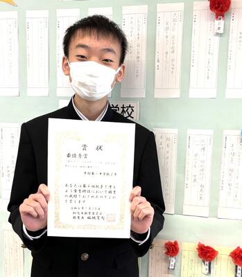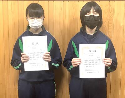 2月13日(火)に写真のとおり校長より2名の生徒に表彰状を伝達しました。おめでとうございます。