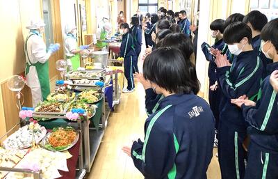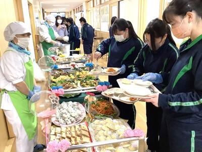 2月6日(火)には,間もなく卒業を迎える3年生のために,「卒業バイキング給食」を実施しました。3年生の皆さん,卒業おめでとうございます!!