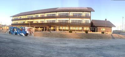 校舎屋根工事終了に伴い,これまで校舎南側玄関出入口に事故防止のため設置してあったボックスカルバートを3連休中に,テニスコート北側に写真のとおり設置しました。