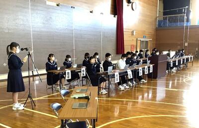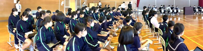 10月6日(金)6校時に後期生徒会総会を以下の写真のとおり実施しました。生徒会会長を中心に前向きな議論が活発に展開されました。