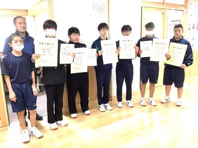 県大会に向けてさらに精進し成長することを目指しましょう。(写真は10月10日校長から表彰状伝達後の写真撮影による。)