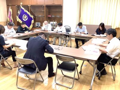 本校舎屋根修復のための第8回定例会が9月13日に開催されました。(写真のとおり)工事は順調に進んでおり,北東方向にずれた屋根を元の位置に戻す作業は終了し,戻した屋根をボルト等で校舎本体に固定する作業や校舎側面壁等の工事等になるとのことでした。