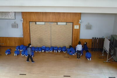 1年生から3年生も先生の指示で、身を守る行動をとることができました。話し声は一つもなく、みんな真剣に取り組むことができました。