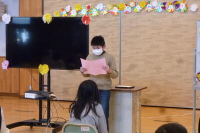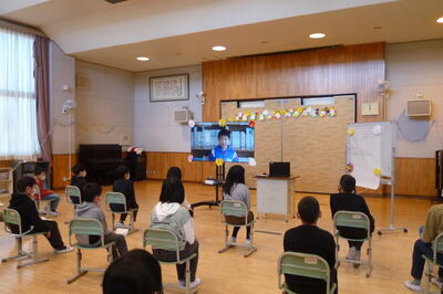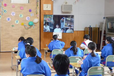 みんなで歌が歌えないので、二分の一成人式の歌を一人一人が歌った映像でつなぎました。