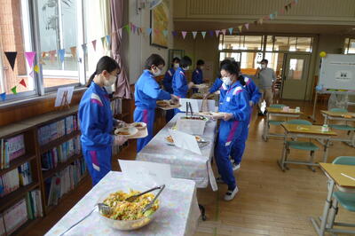 ごちそうさまの前に、先生方に手紙を渡し、感謝の心を伝えてくれました。みんなおなか一杯食べてくれてとてもうれしいです。小学校の給食の良い思い出にしてください。