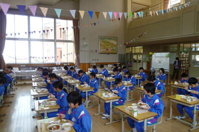 おかわりをする人が少なく、たくさん余るのではと心配しましたが、担任の美紀子先生が、「5時間目の体育は6時間目にします」と言ったら、おかわりをする人が多くなりました。次の体育が気になっていたんですね。先生と子どもたちの温かい意思の疎通が感じられました。