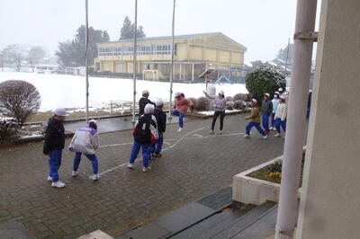今朝は、-4℃と冷え込み一面銀世界でした。保護者の皆様には、路面が凍る中、登校時は最新のご配慮をいただきありがとうございました。