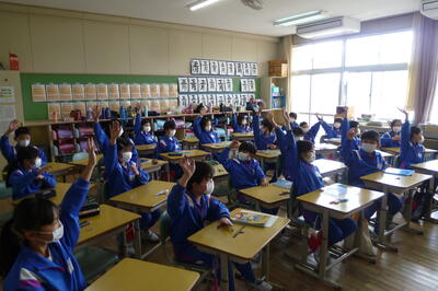 各教室で、手を挙げて答えました。このように節分にちなんだクイズが3問出題されました。