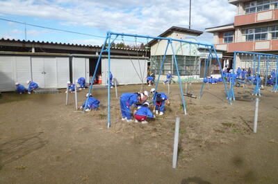 苗植えの後は、学年ごとに分担して、校庭の除草作業を行いました。