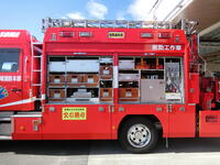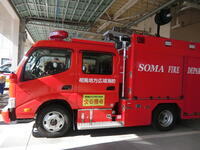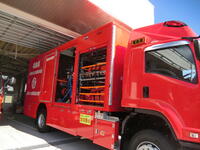 さまざまな用途の車が並んでいました。中には救助や消火の道具がいっぱいありました。