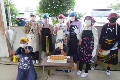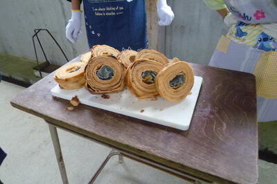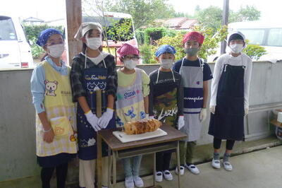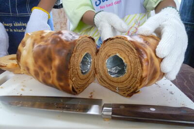 人数分に切り分けて、試食をした後、お家に持ち帰りました。時間をかけて友達と協力してバームクーヘンを作り上げ、達成感を味わうことができました。そして何より楽しく活動することができました。