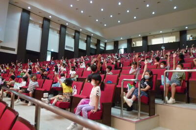 コロナ禍で学校では鑑賞教室を行えずにいましたが、思い切って市民会館を借りて本日7月7日、『たなばた音楽会』を行いました。幼稚園、小学生、職員、保護者みんなで鑑賞しました。