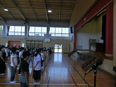 33日間の夏休みが終わり、2学期がスタートしました。体育館に集まって始業式をしました。