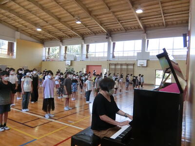 全校生で校歌を歌いました。