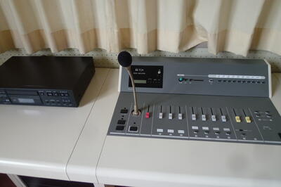 昨年度半ばに壊れて使えなくなっていた放送室の機械が、今日新しくなりました。2学期からは、朝やお昼の放送もできるようになります。
